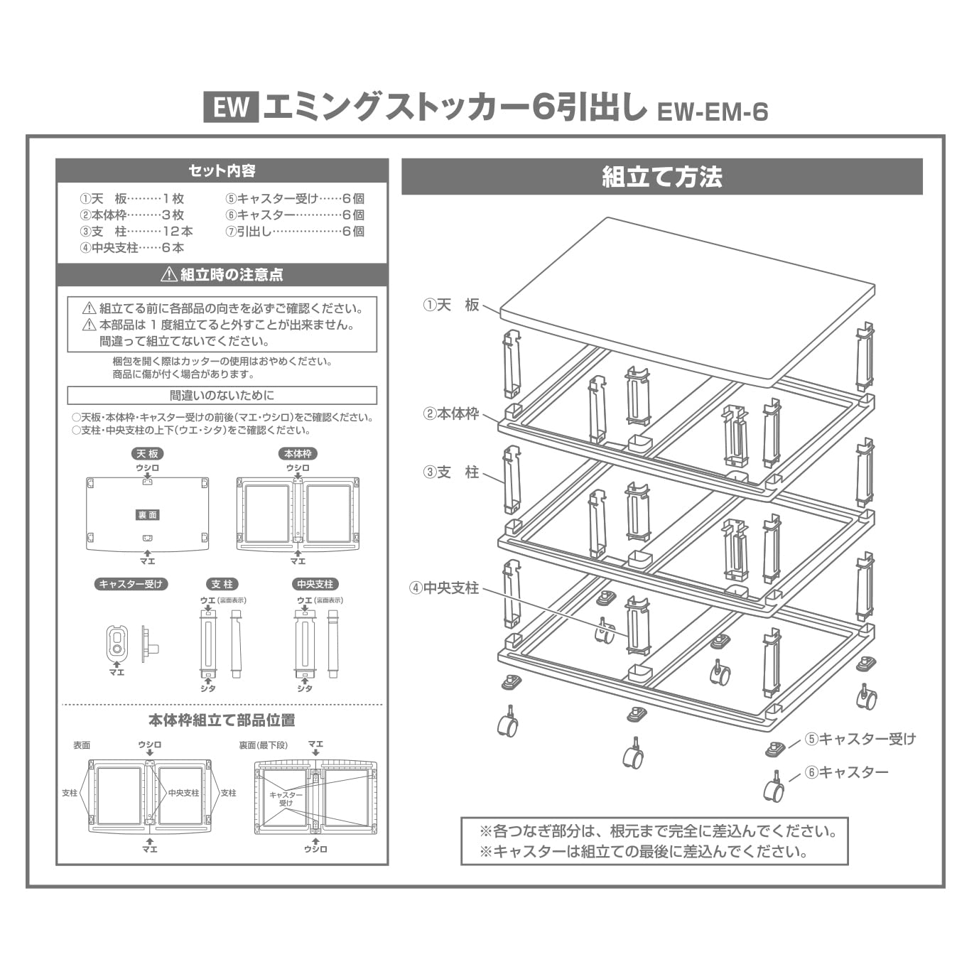注意: このキャビネットは10kgまでの荷重に耐えます。組み立て時は注意してください。