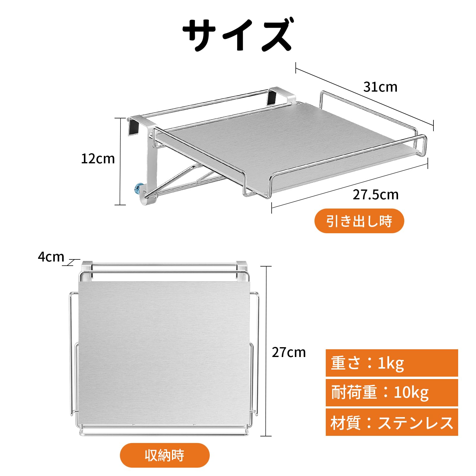 キッチン作業台 ハンギング折りたたみ式棚 補助テーブル 折りたたみ式 タオルハンガー 引き出し 引掛け式 折りたたみ棚 簡易テーブル 多機能