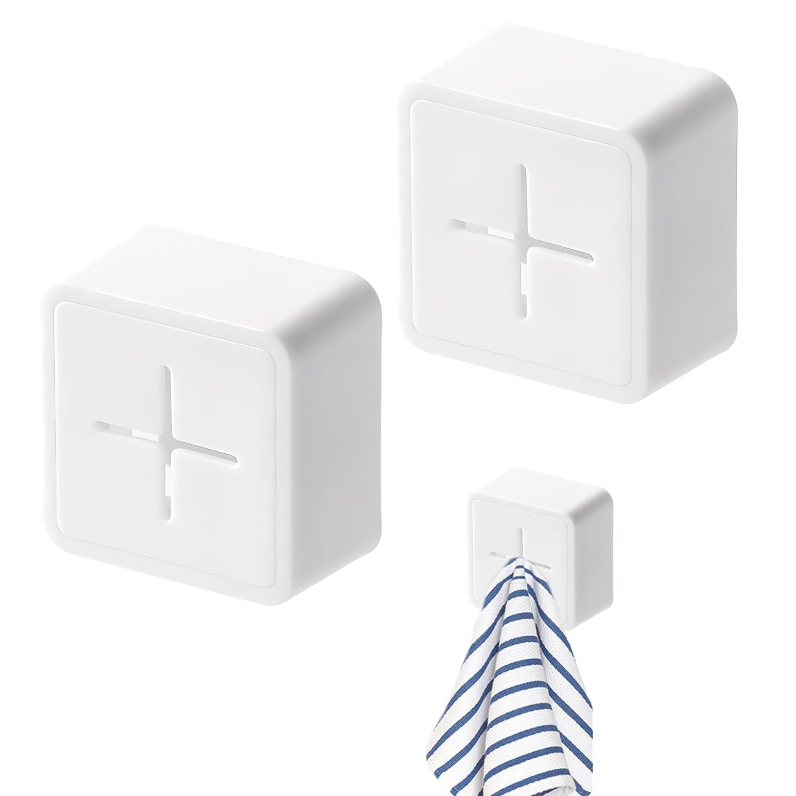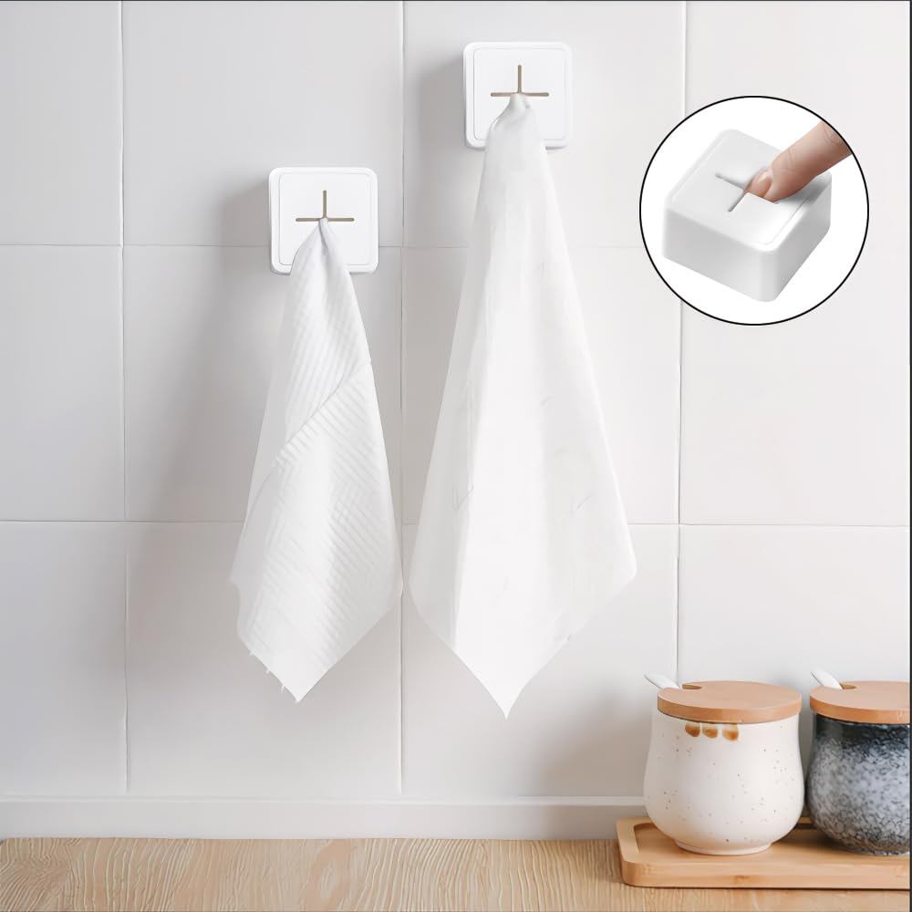 タオルホルダー 2個セット 粘着式 フィルムフック 壁掛け タオルハンガー 取り付け簡単 台所 洗面所 布巾ハンガー タオル収納用 (ホワイト)