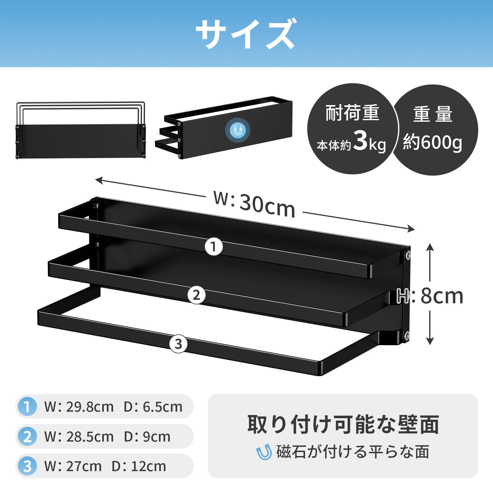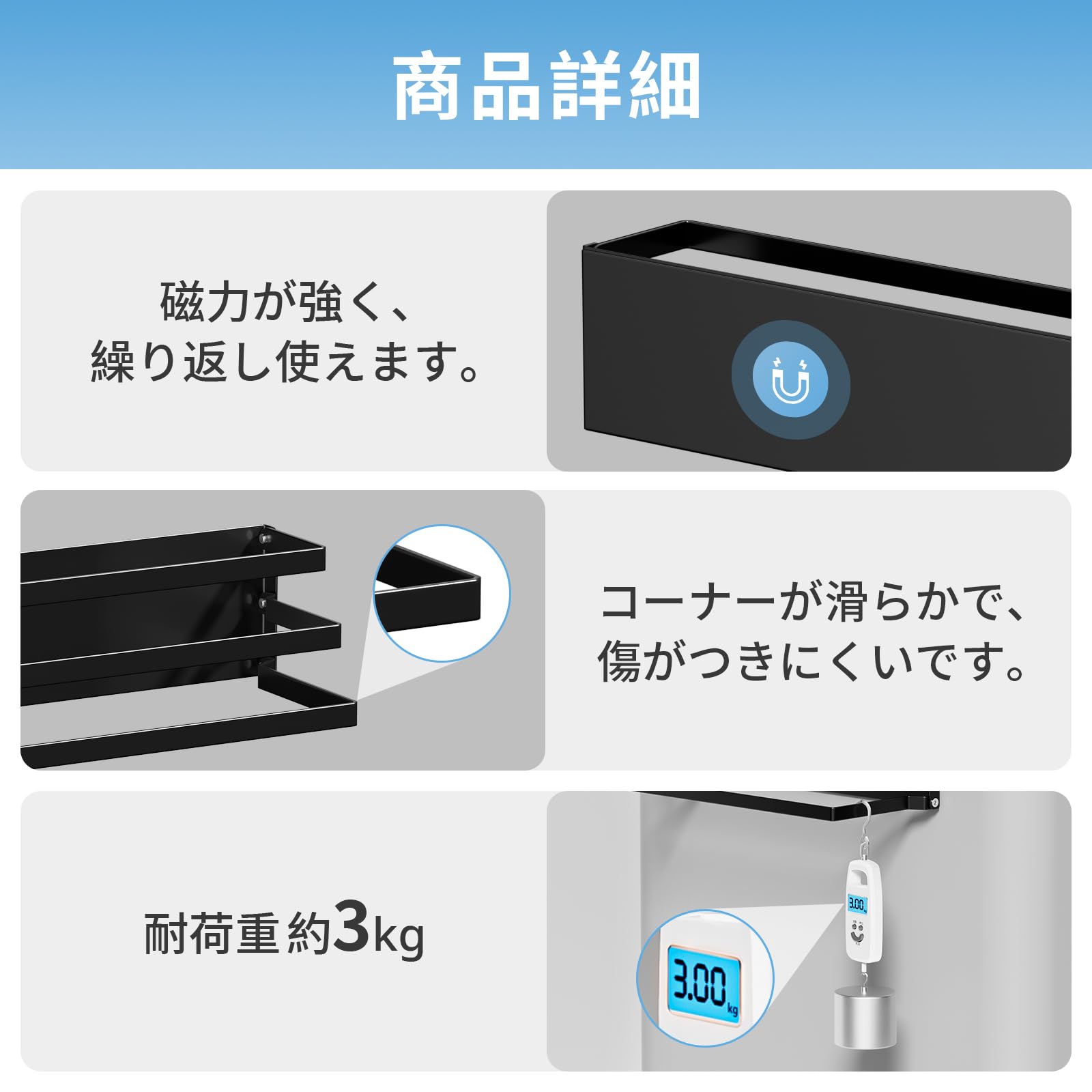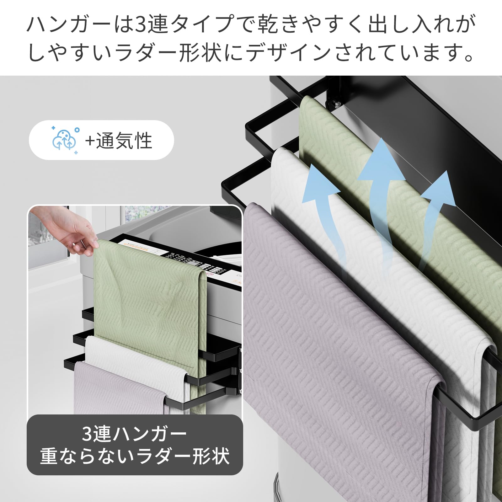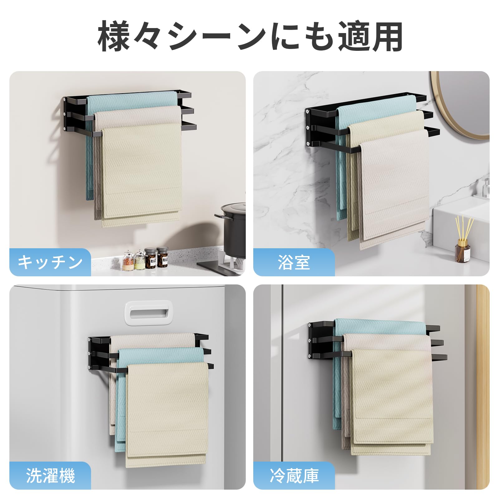 タオルハンガー 洗濯機前 強力マグネット キッチンタオルハンガー ふきん掛け 通気性がよく タオル掛け ブラック