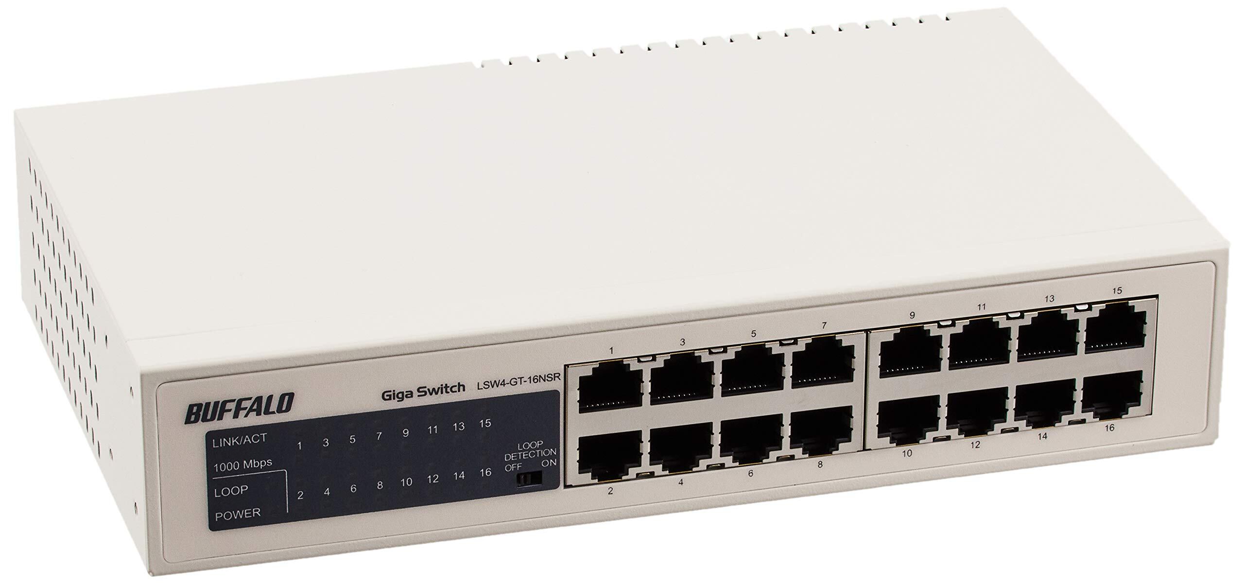 BUFFALO Giga対応 金属筺体 電源内蔵 16ポート ホワイト スイッチングハブ 日本 LSW4-GT-16NSR