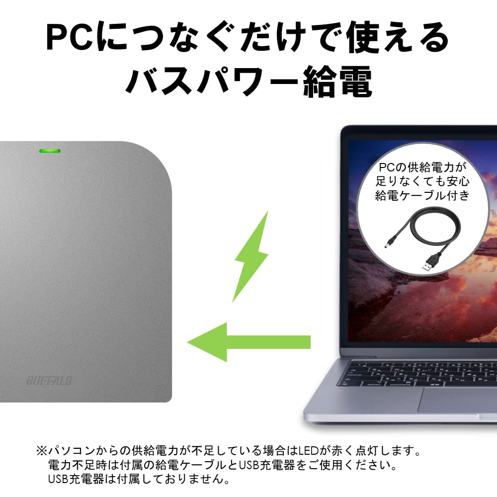バッファロー USB3.2(Gen1)/3.0 外付け Mac 対応 DVD/CDドライブ バスパワー(給電ケーブル付き) 薄型ポータブル 国内 シルバー DVSM-PMV8U3-SV/N
