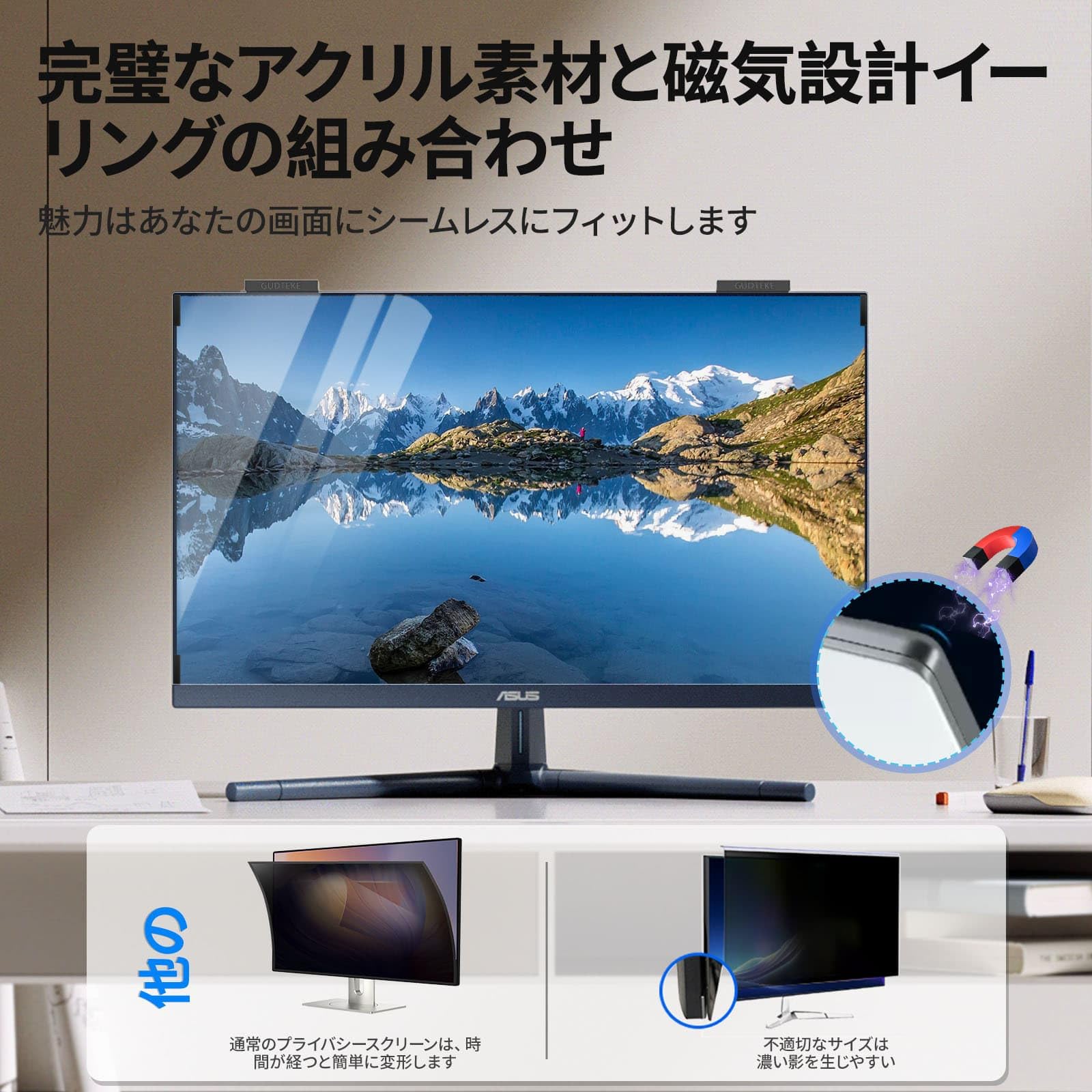プロフェッショナルサービス: 当社の磁気式コンピュータースクリーンプライバシーシールドは跡が残らずに取り外せるので便利です。プライバシースクリーンの調整や交換時に摩耗や粘着剤の残留を心配する必要がありません。GUDTEKE は 10 年以上にわたり高品質のコンピュータープライバシースクリーンを専門に扱っており、ユーザーから高い評価を受けています。ご質問があれば、当社のカスタマーサービスチームがお手伝いいたします。