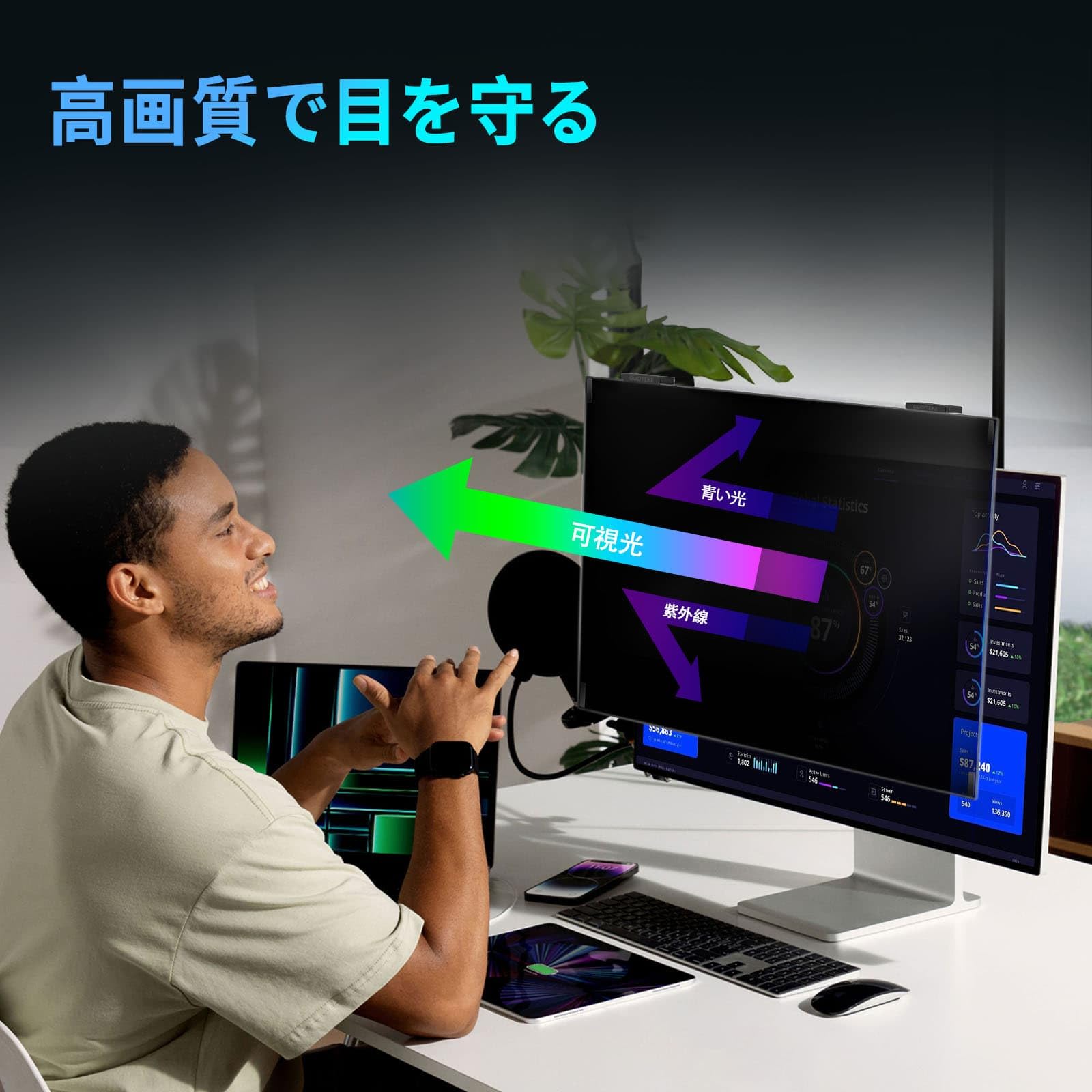 HD クリアネスと目の保護: コンピューターモニター用の磁気プライバシースクリーンは、優れた視覚的明瞭性を提供し、表示品質を損なうことなく画面の元の色を正確に復元します。紫外線を 99.9% 遮断し、青色光を 98% 抑制します。さらに、反射防止コーティングによりグレアが軽減され、プライバシースクリーンが画面に取り付けられているため明るさが低下して目の疲れを引き起こすことがなく、目の保護を最大限に高めます。