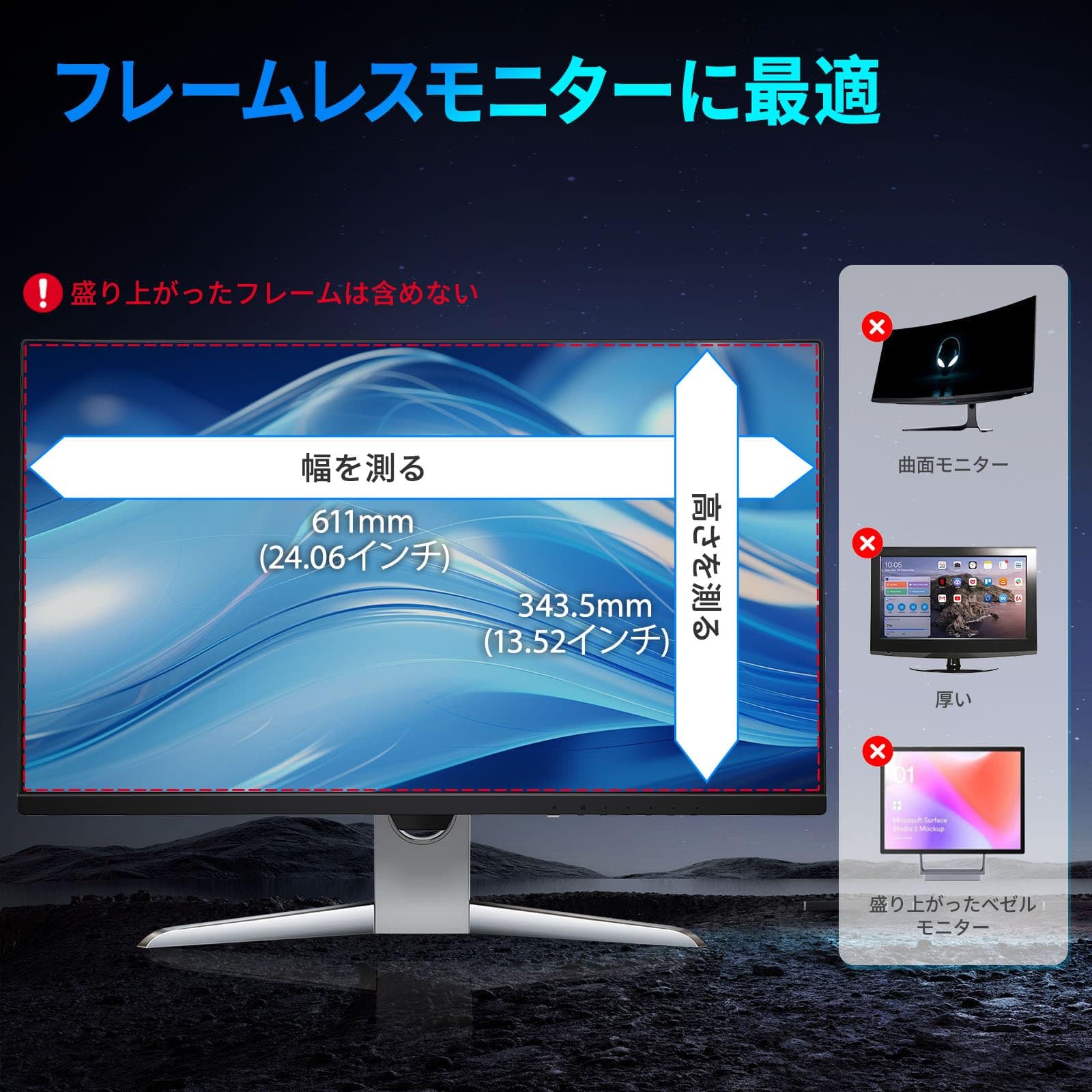 あなたのスクリーンに合わせてカスタマイズ:当社のエンジニアは、市場に出回っている27インチモニターのモデルのほとんどを収集し、元のモニター画面を使用して型を作り、この27インチ16:9モニター固有のサイズを作成しました。これは、モニターに完全に適合します。実際のフィルターサイズ:幅:24.06インチ、高さ:13.52インチ。アクリル素材により、歪みや不要なゴーストがなく、正確にフィットします。コンピューターのプライバシースクリーンを掛けた後、モニターは究極の美しさを維持できます。