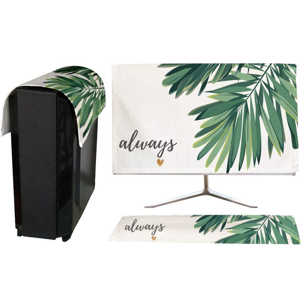 HIGHAWKモニターカバー セット PCカバー ディスプレイ キーボードカバー 防塵 保護 液晶 可愛い(葉B 24インチ)