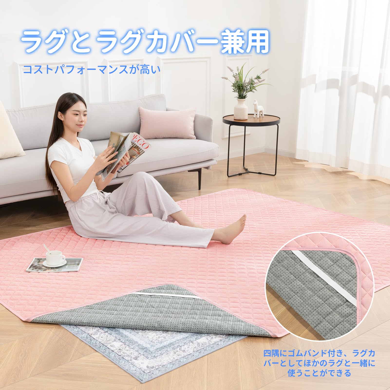 【滑り止め付き】 裏生地は滑り止め加工付きなので、ズレにくく、子供とお年寄りがいるお家庭でも安心して使える。四隅にゴムバンド付き、ラグとして使用するだけではなく、ラグカバーとしても使用できる、洗濯不便な冬ラグ(厚い/毛足長い)を保護します。