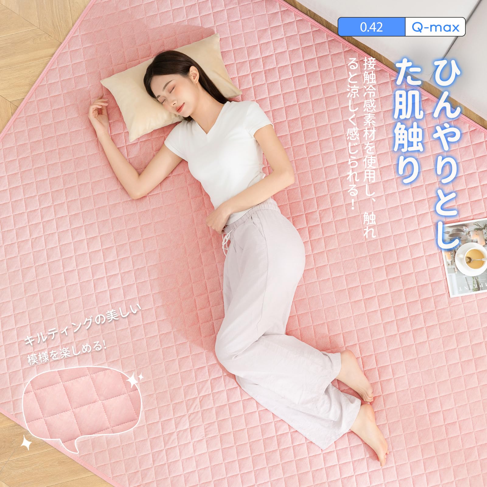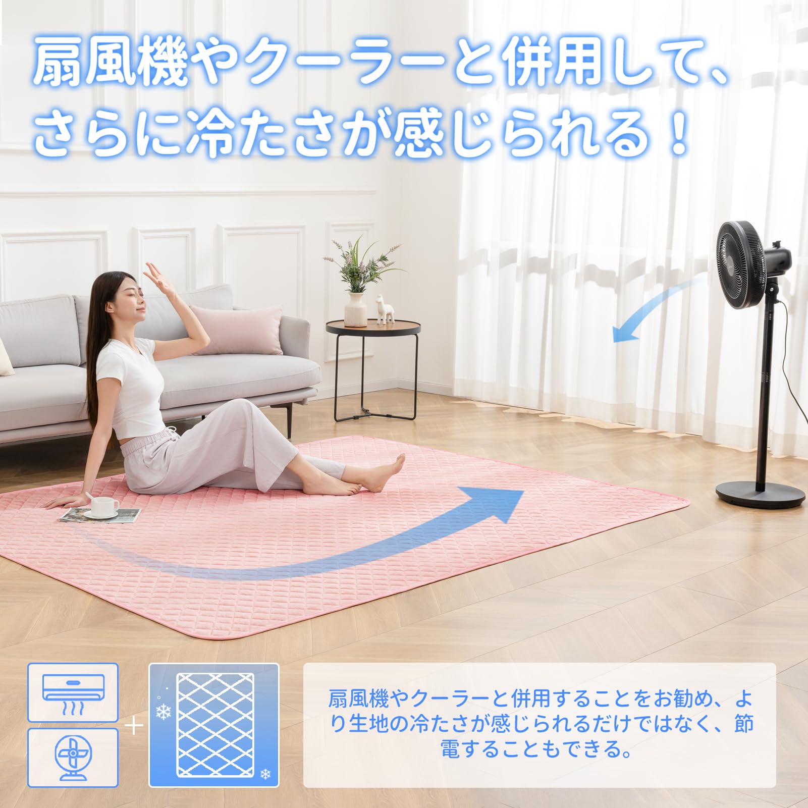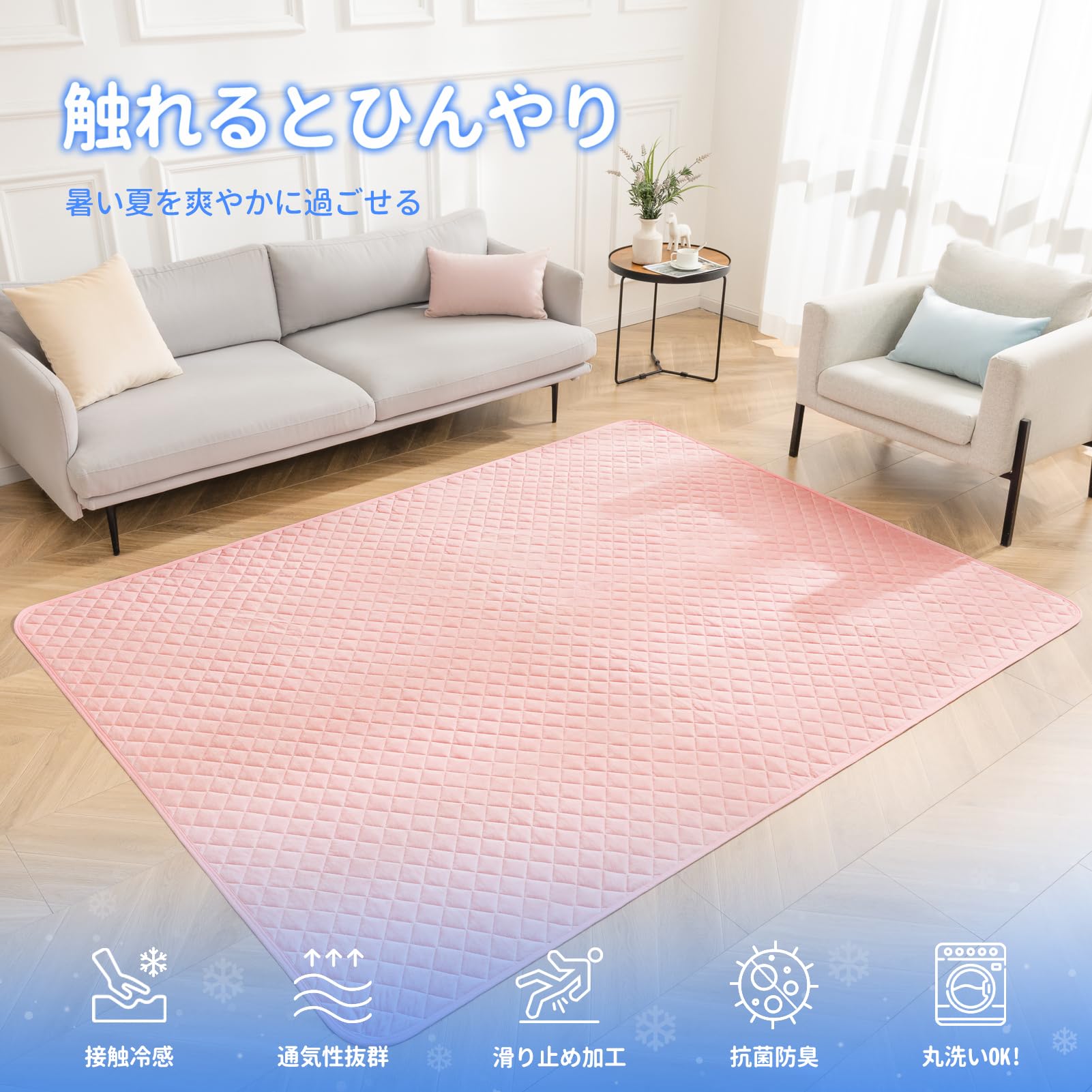 Ashler ラグマット 夏用ラグマット ラグ カーペット 接触冷感 ひんやり 冷たい 省エネ 節電対策 抗菌防臭 防ダニ 滑り止め付き 洗える 通気性 速乾性 約205×250cm(約3.2畳) ピンク