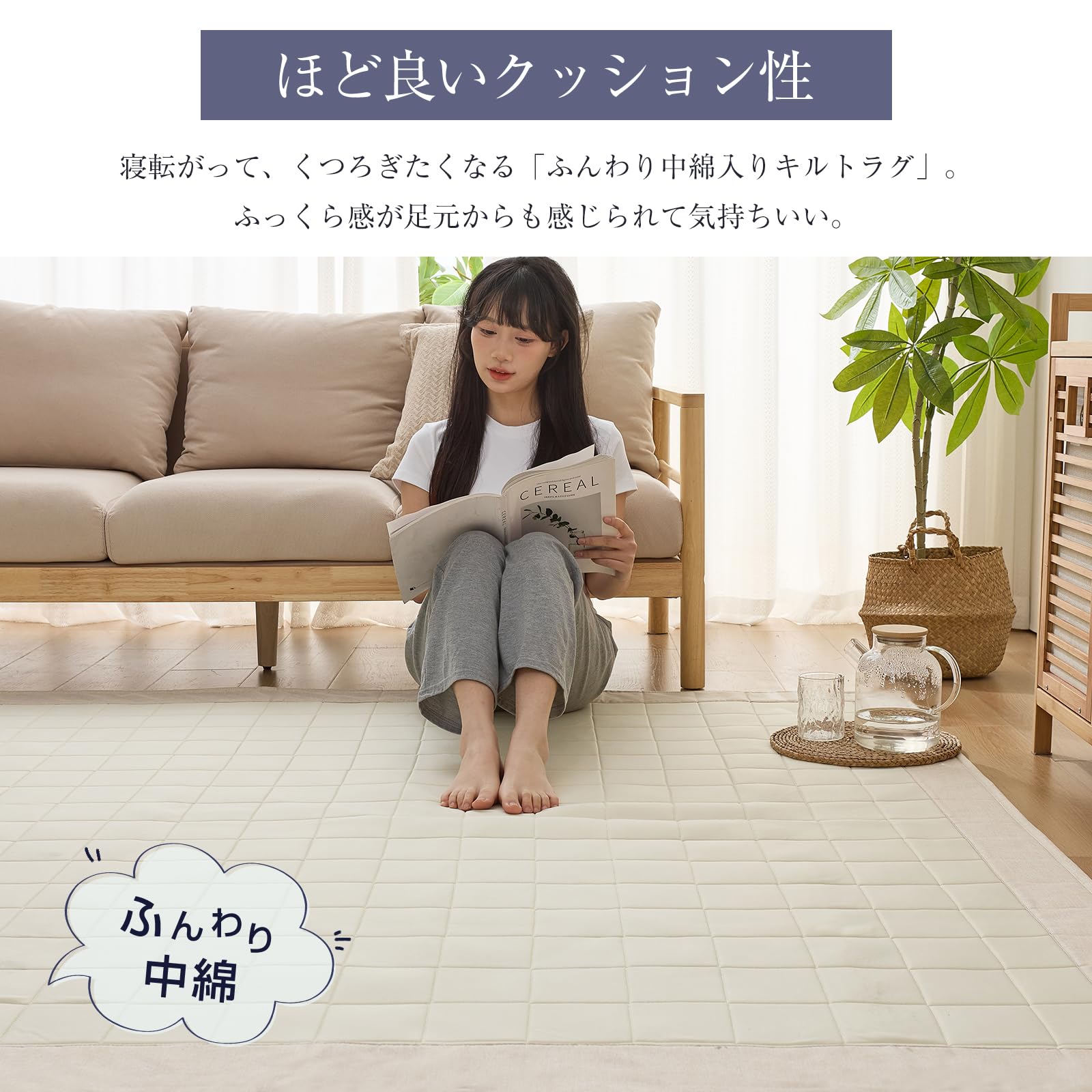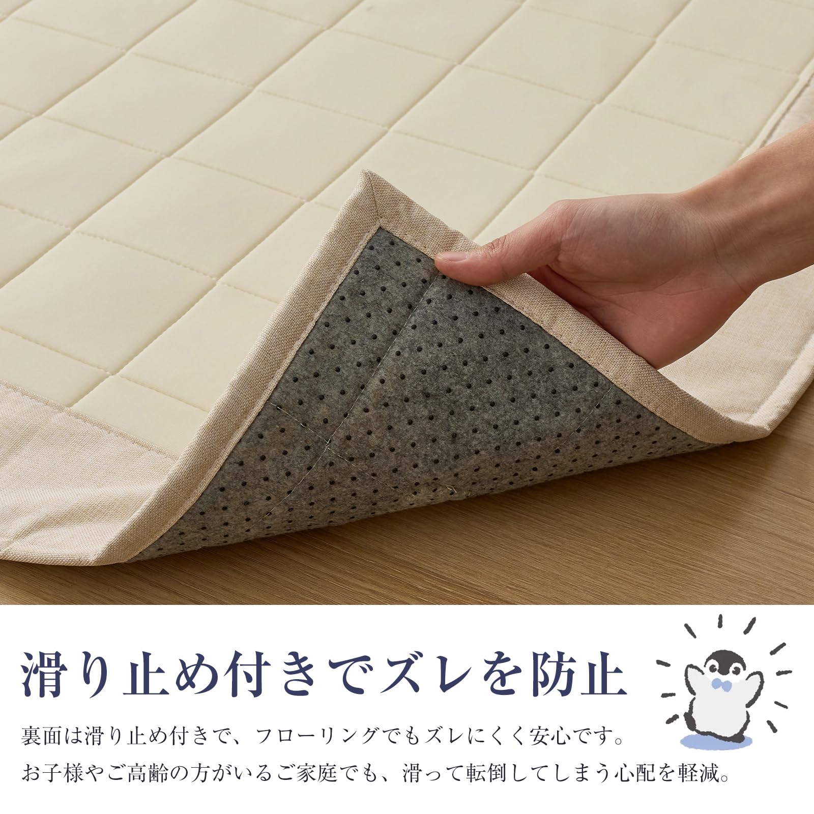 【サイズ】185*185CM(約2畳)【色】無地・ベージュ 【素材】表側:ナイロン100% 裏側:ポリエステル100% 詰め物:中材:ウレタンフォーム約7mm(加工前)