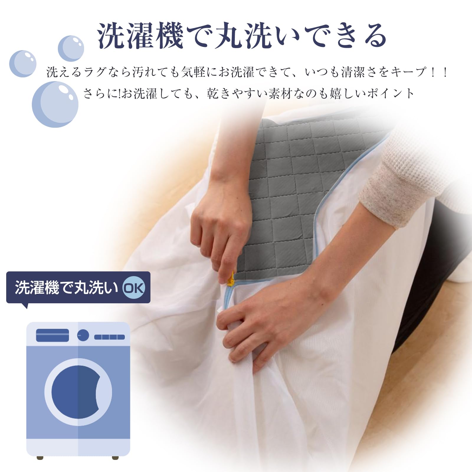 【お手入れも簡単!】冷感素材を使った毛足がないのでゴミが絡まる心配も少なく、掃除機や粘着テープでサッとお掃除が可能です。手洗い推奨で、洗濯機をご使用の場合は必ず容量をお確かめの上、カーペット専用の洗濯ネットに入れてください。軽量でコンパクトに折り畳め収納も便利です。