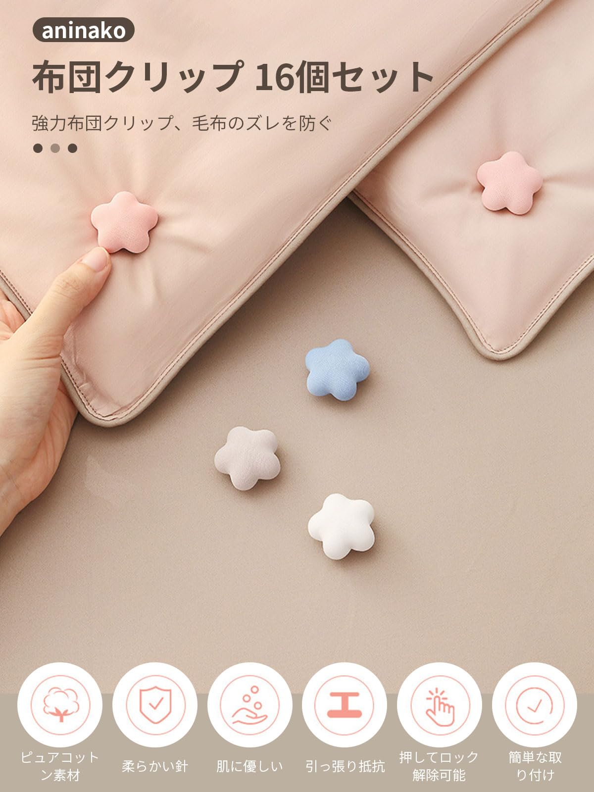 【実用的なクリップ】16個の柔らかい針布団クリップ (ツール付き)。高品質のピュアコットンと金属で作られており、耐久性があり、長い間使用できます。 シーツと掛け布団は両方とも強力なクリップで固定されているため、掛け布団が反対側に流れてしまう心配はありません。 毛布をしっかりと固定し、快適な睡眠をお届けします