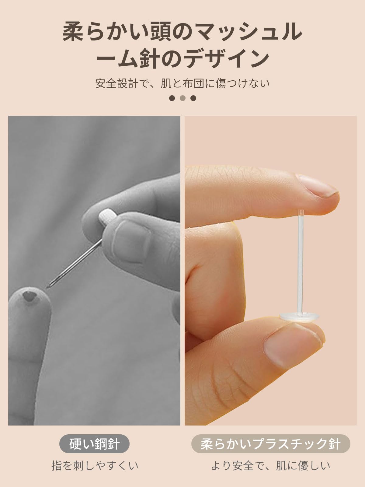 【柔らかい針のデザイン】柔らかい針はプラスチックで作られており、鋼針に比べて非常に安全です。布団を傷つけません。 軽量設計なので掛け布団に重さを加えません