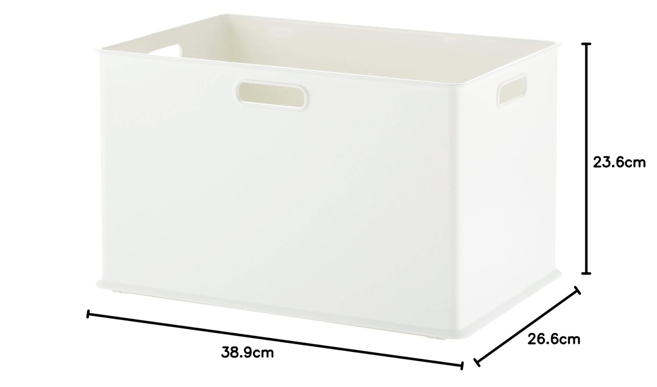 【在庫処分】サンカ インボックス 収納ボックス Lサイズ ホワイト (幅38.9×奥行26.6×高さ23.6cm) カラーボックスにぴったりフィット 3方向取っ手付き 積み重ね可能 おしゃれ 引き出し キャスター取り付け可 日本製 inbox 収納ケース squ+ NIB-LWH