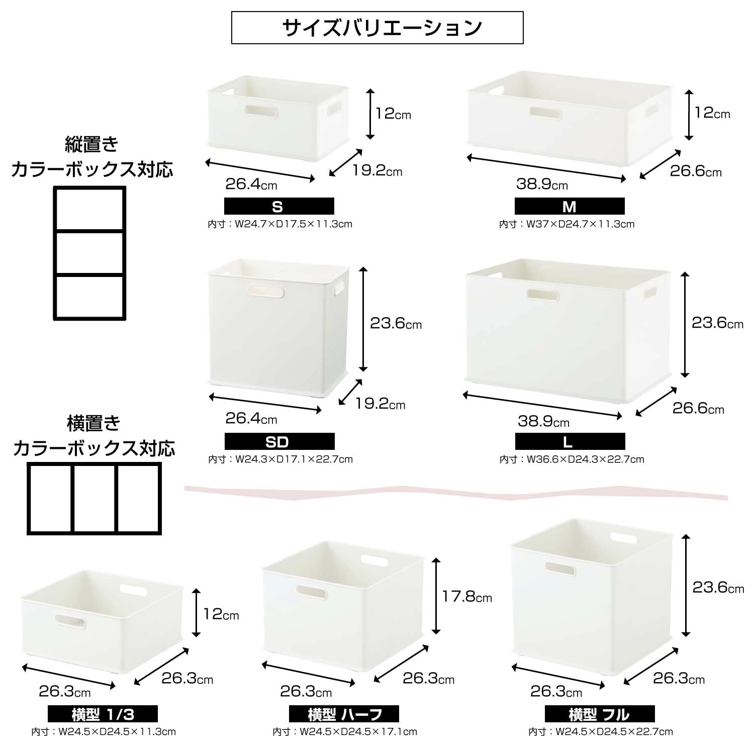一般的なカラーボックスに合うサイズ展開。