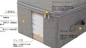 【両開き&丈夫】ダブルファスナーを採用しているので、左右どちらからでも開け閉めができます。ふたが大きく開くので荷物の出し入れが簡単です。また、内芯はPPプレートを採用しているため型崩れがしにくい構造になっており、積み重ねて収納が可能です。スペースを無駄なくスッキリ整理できます。