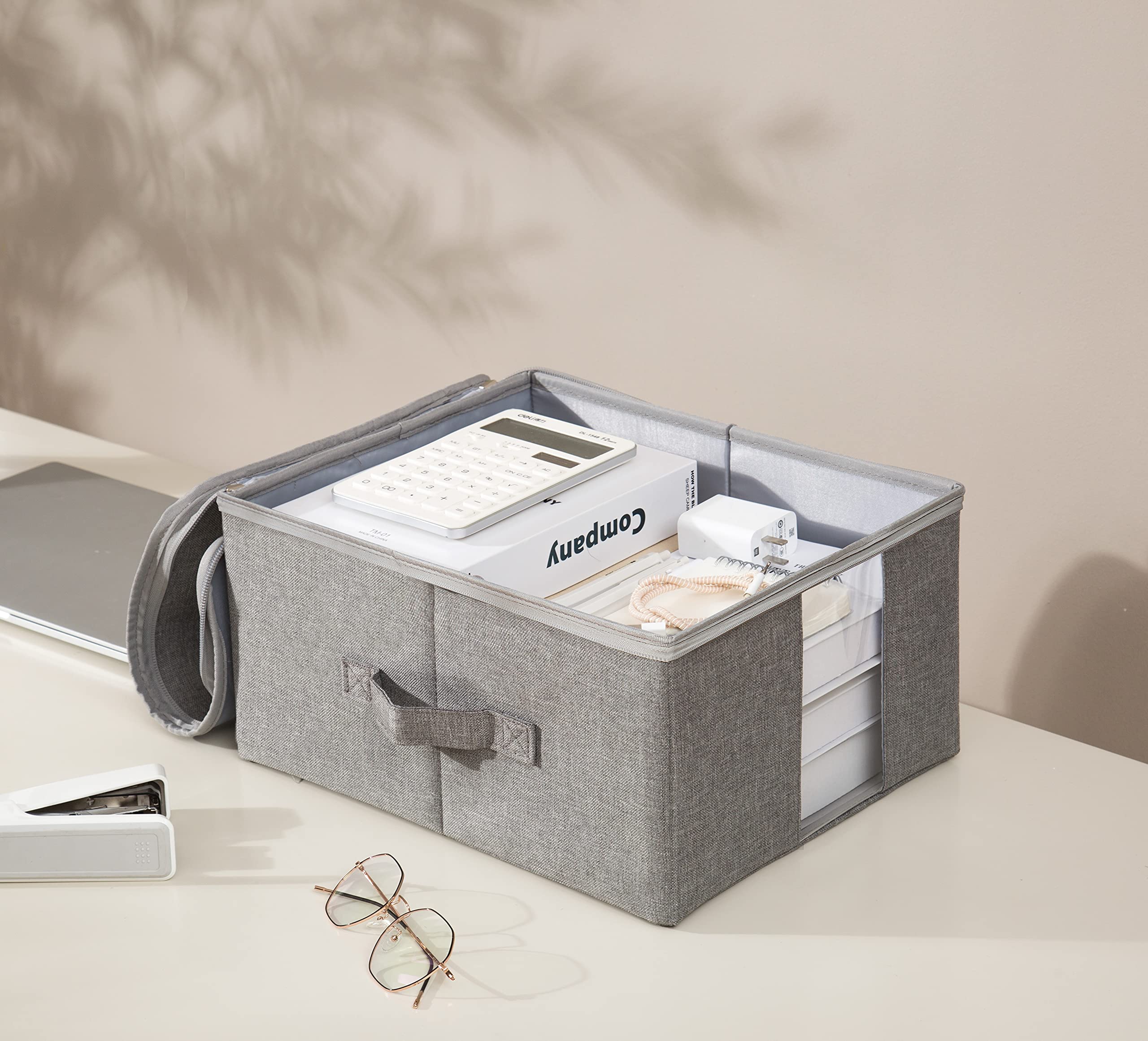 【在庫処分】TIANZONG収納ボックス 収納ケース 大容量 衣類収納 折りたたみ 取っ手付き ふた付き おしゃれ 布製 衣装ケース 透明窓付き ファスナー (グレー 幅45×奥行35×高さ25cm 2点セット)