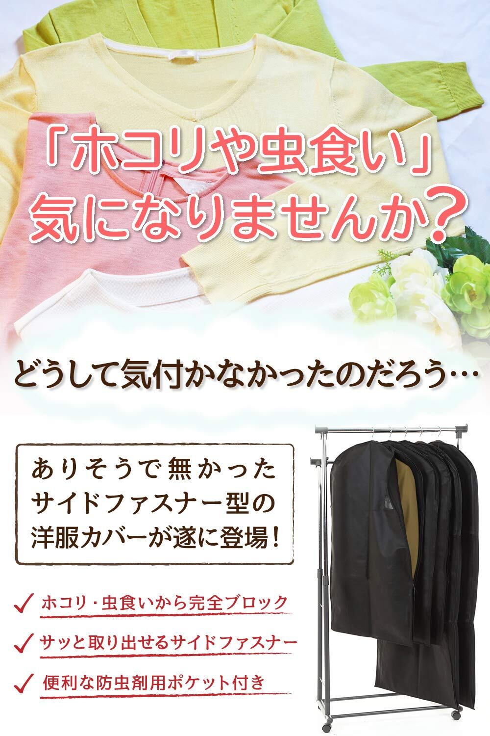 [RATOM] 洋服カバー 衣類カバー サイドファスナーで使いやすい(スーツサイズ5枚)