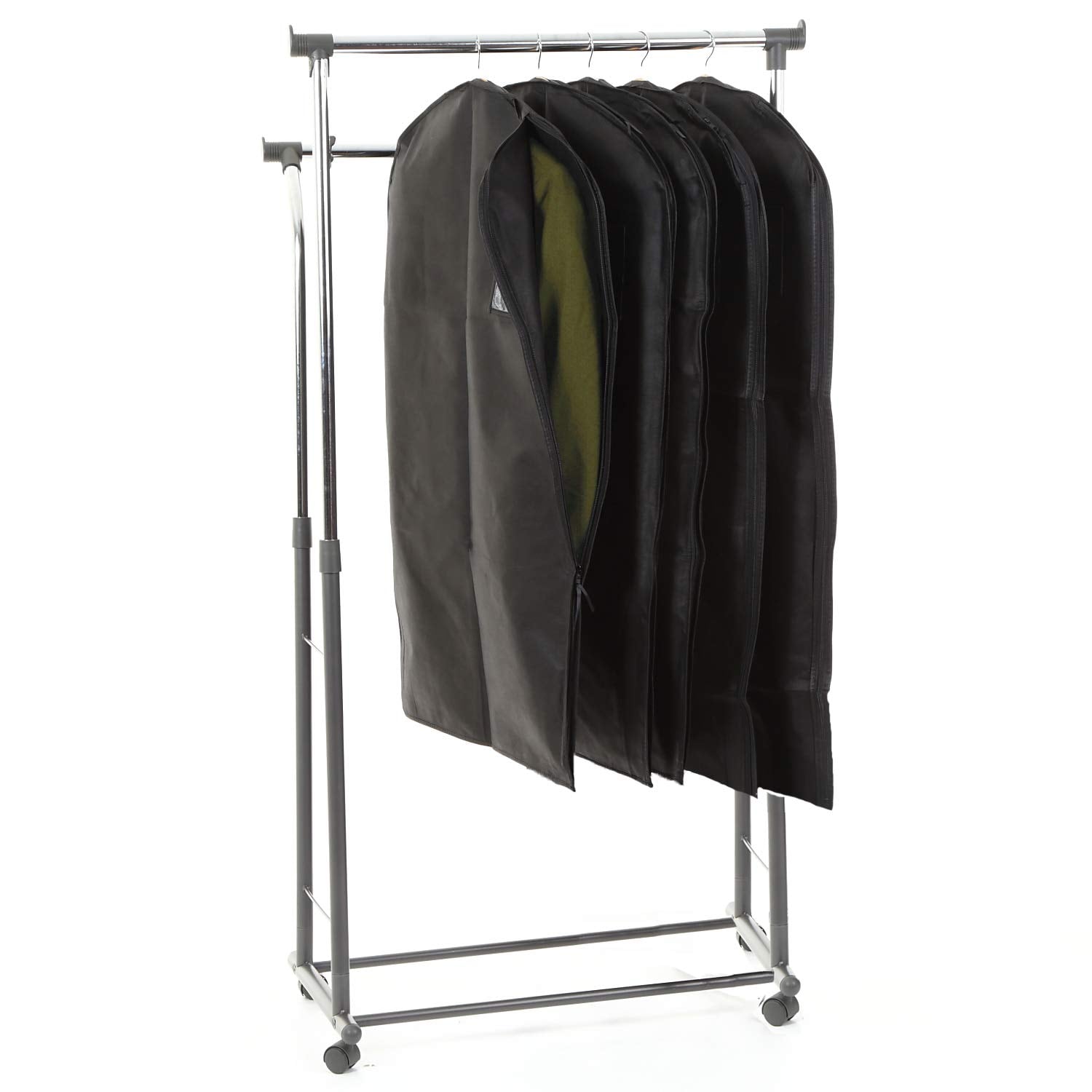 【どのサイズを選べばいいの?】ご自身の収納予定の衣類によってご購入するタイプをお選びください。「スーツサイズ5枚セット」は、縦105×横60cmですので、スーツやジャケット等の丈の短い衣類に適しております。「ロング5枚セット」は、縦140×横60cmですので、ロングコートやワンピース等の丈の長い衣類に適しております。