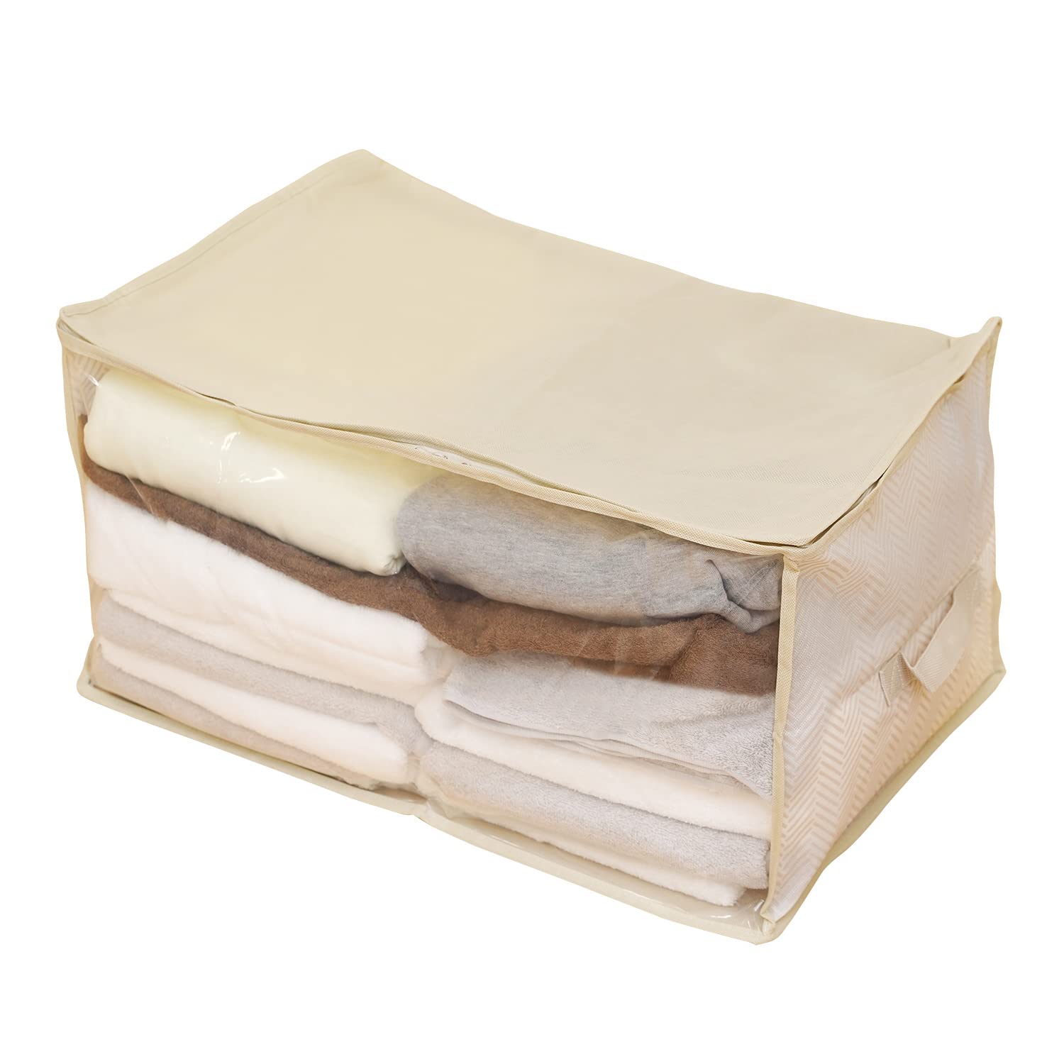 通気性のある不織布製の収納袋です。中身が確認できる透明窓付き。