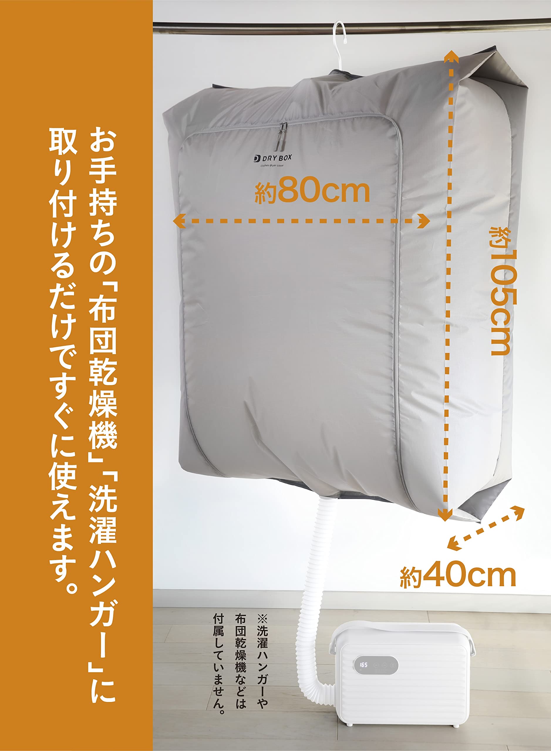 室内干しでもしっかり乾く衣類乾燥カバー。お手持ちの洗濯ハンガーとふとん乾燥機を取り付けるだけですぐに使えます!※本商品に「洗濯ハンガー」や「ふとん乾燥機」などは含まれておりません。