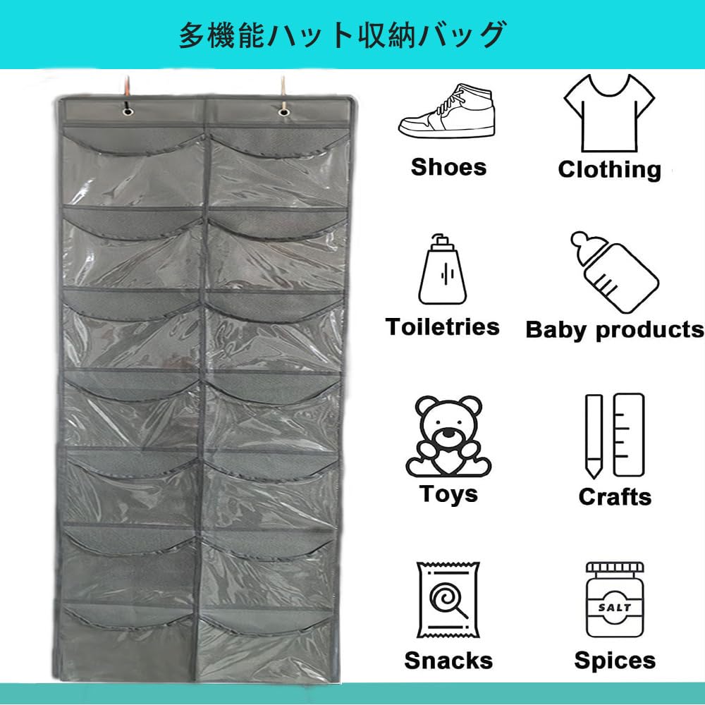 14ディープポケット:ドアの上の帽子ラックは、キャップが落ちないように十分な深さがあります!必要に応じて、1つのポケットに複数のキャップを収納できます。ポケットが豊富なベースボールキャップ用の帽子オーガナイザーは、他のアクセサリーを収納するのに役立ちます