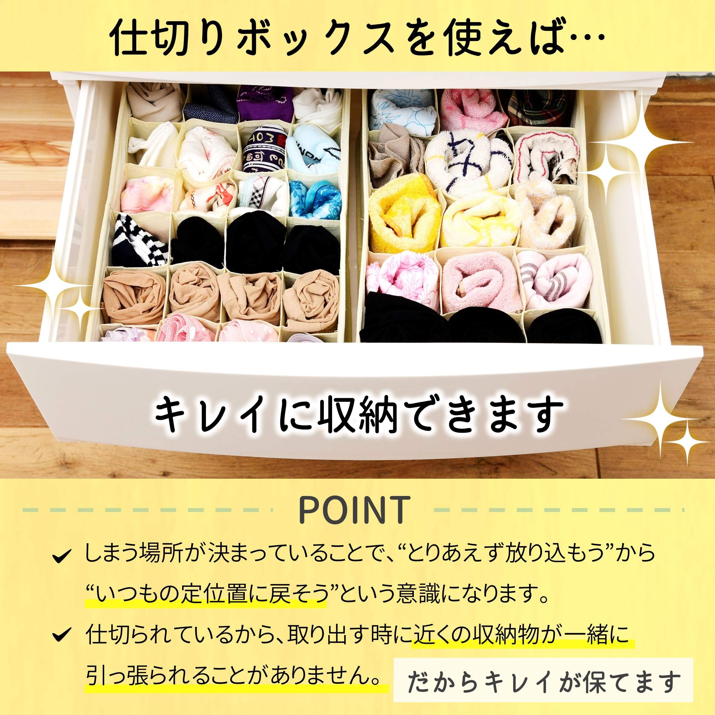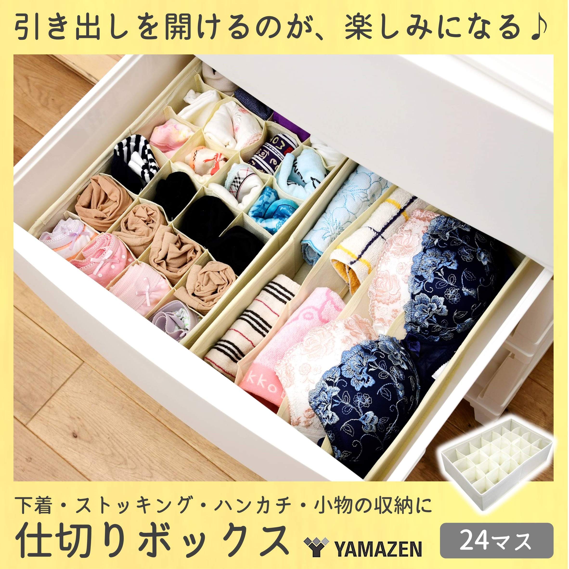 山善(YAMAZEN) 仕切りボックス 幅34×奥行21×高さ10cm 衣類収納 24マスタイプ 引き出し 仕切り 収納 アイボリー YCS-C