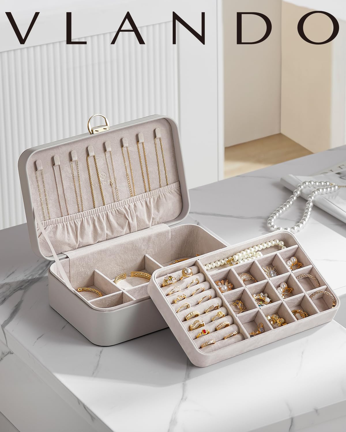 【?洗練されたデザイン】Vlando二段式ジュエリーボックスはあなたのコレクションを美しく収納します。人工皮革を使用した柔らかな質感と上品なスタイリッシュさが特徴です。インテリアにもなじむ洗練された外観は、ドレッサーやサイドテーブルに置いても高級感を演出します。