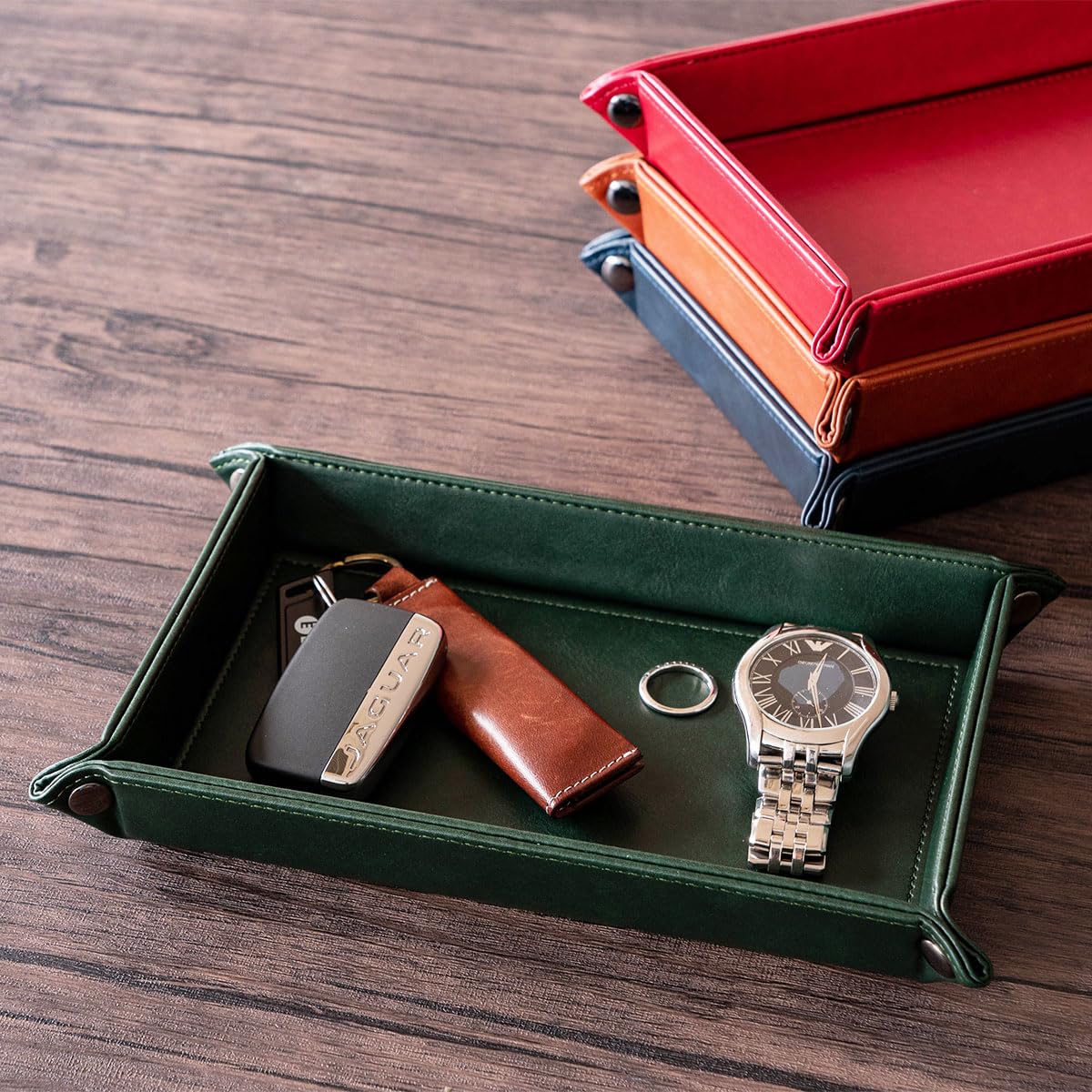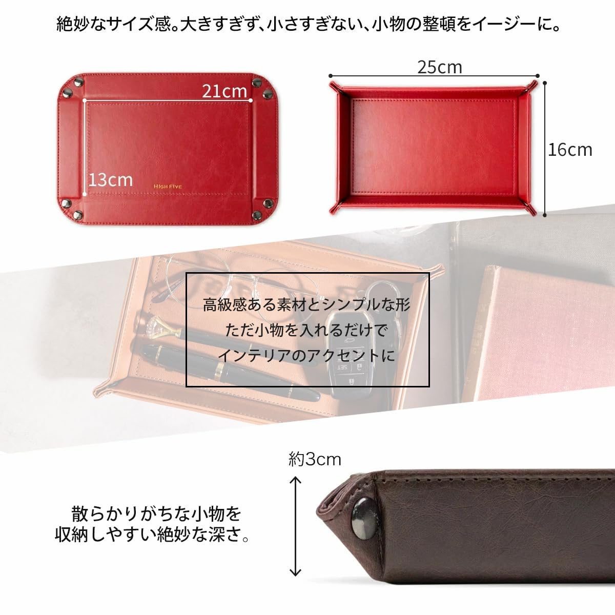 【いいサイズ感&いい深さ】 高級な質感のPUレザーを使用(Greenのみマイクロファイバーを使用しています)。 リビング、玄関、ベットサイド、書斎など、どこにでも馴染む。※同梱の乾燥剤に圧力がかかり商品に傷が付くことがありましたので、梱包方法の改善をいたしました。