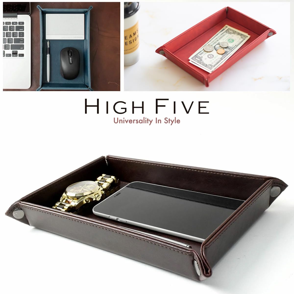 [HIGH FIVE] 長方形 レザートレー トレイ 小物入れ アクセサリー リモコン 鍵 腕時計 指輪 収納ボックス グレージュ