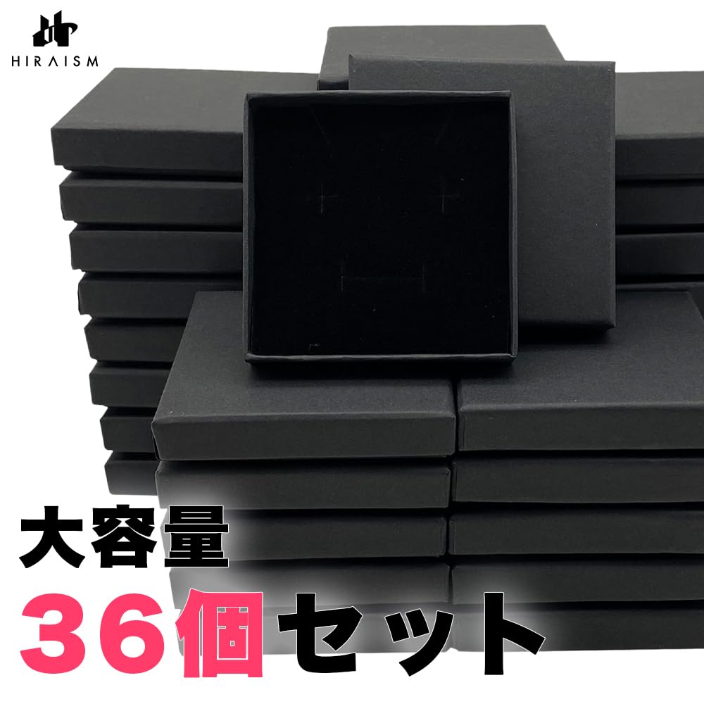 HIRAISM ギフトボックス アクセサリー 箱 薄型 正方形 小物 ジュエリー ピアス 収納 無地 クラフト紙 36個 セット (7 x 7 x 1.5cm, ブラック)