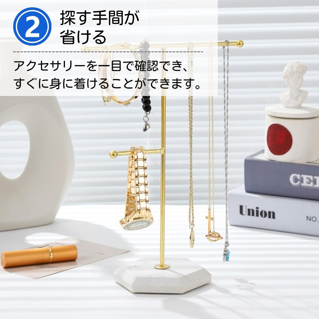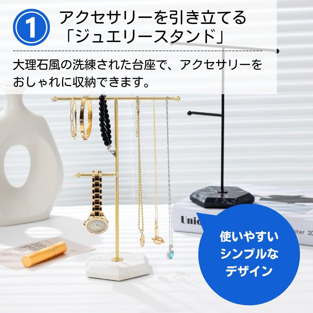 【洗礼された外観のジュエリースタンド】美しい見た目でありながら、散らかりがちなジュエリーをすっきりと整理できます。