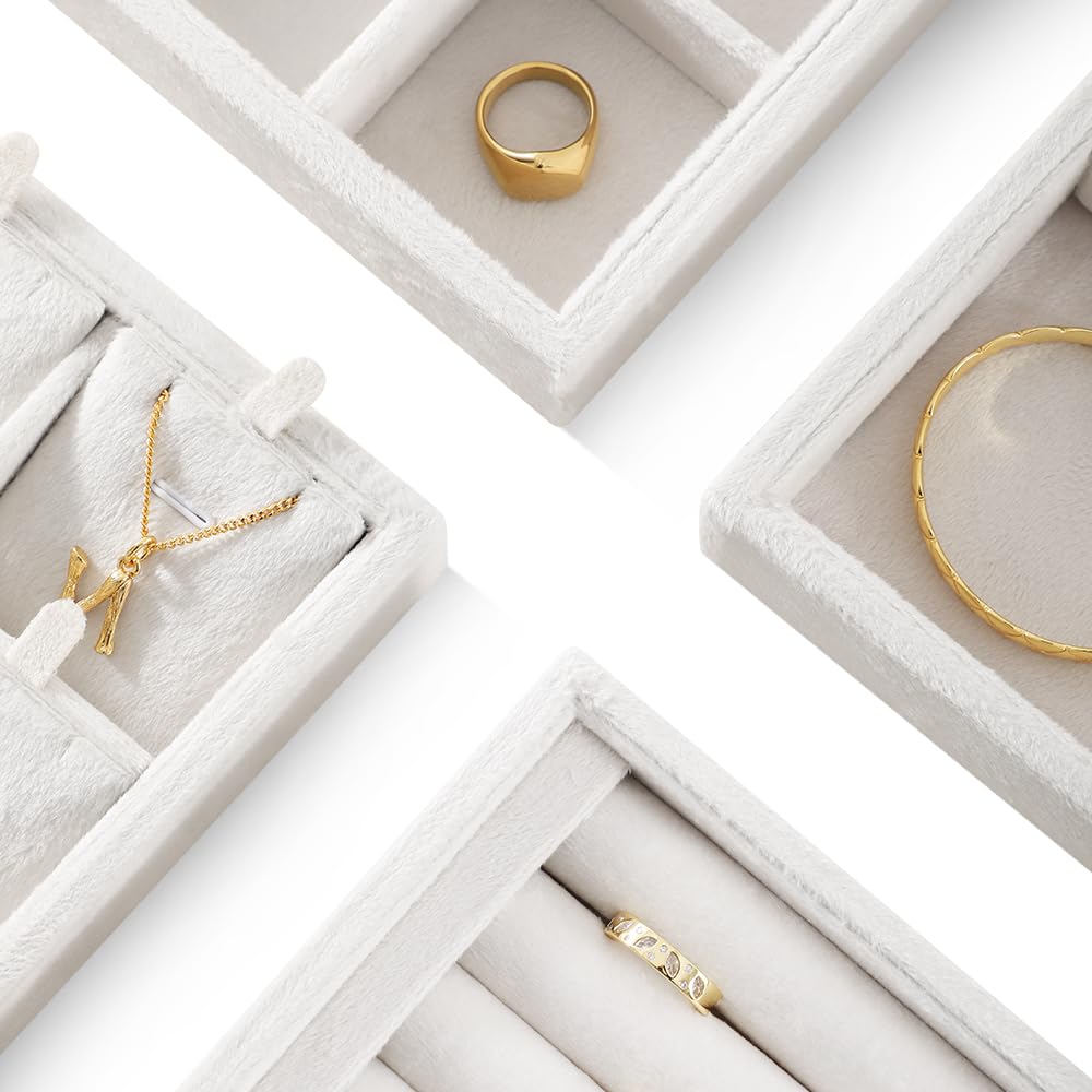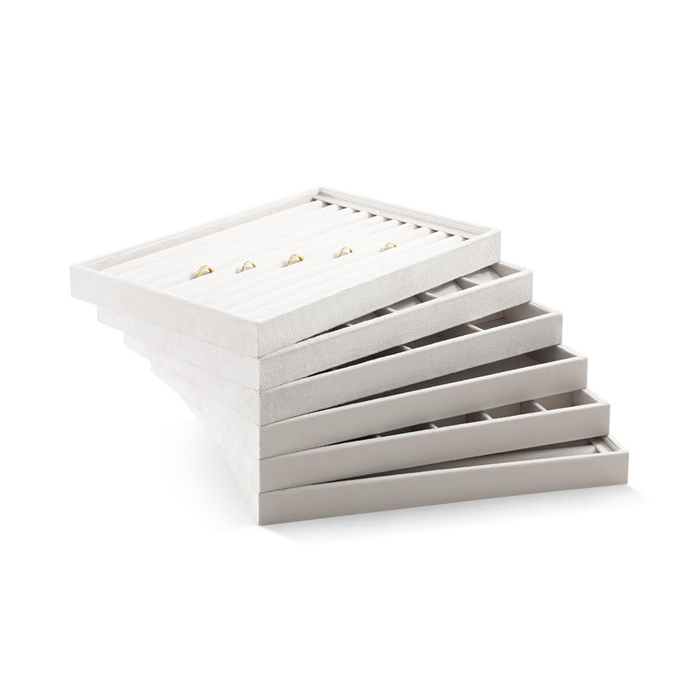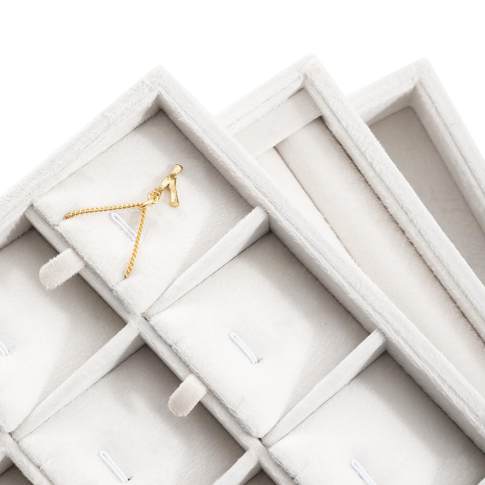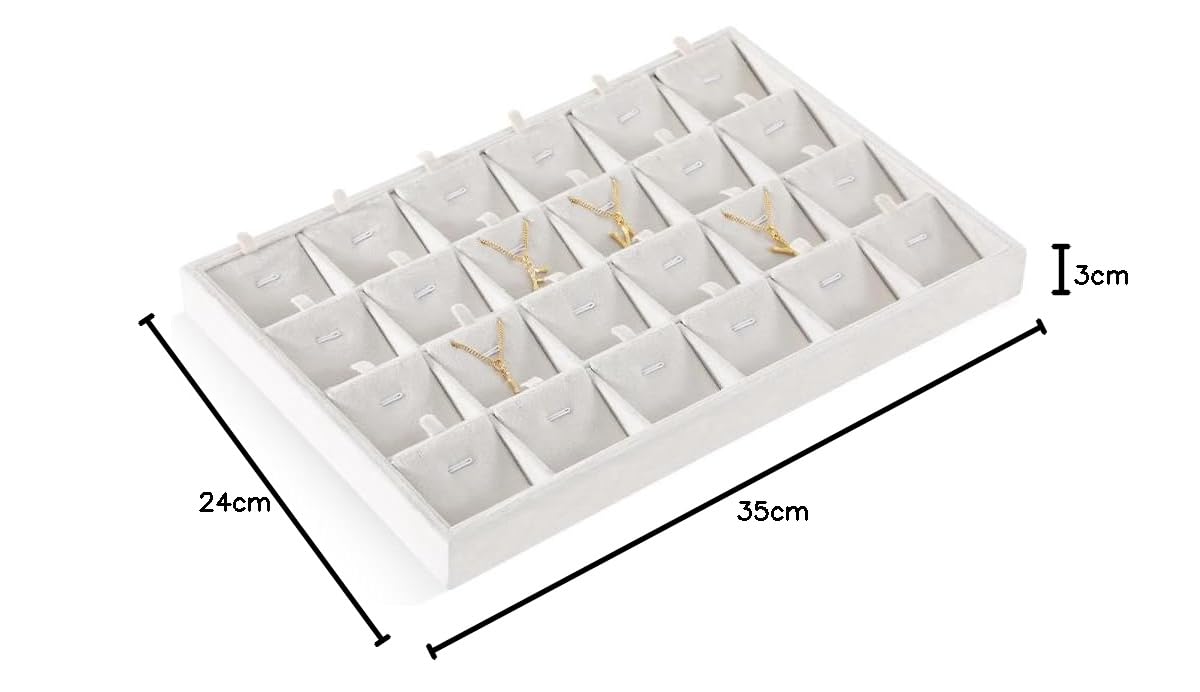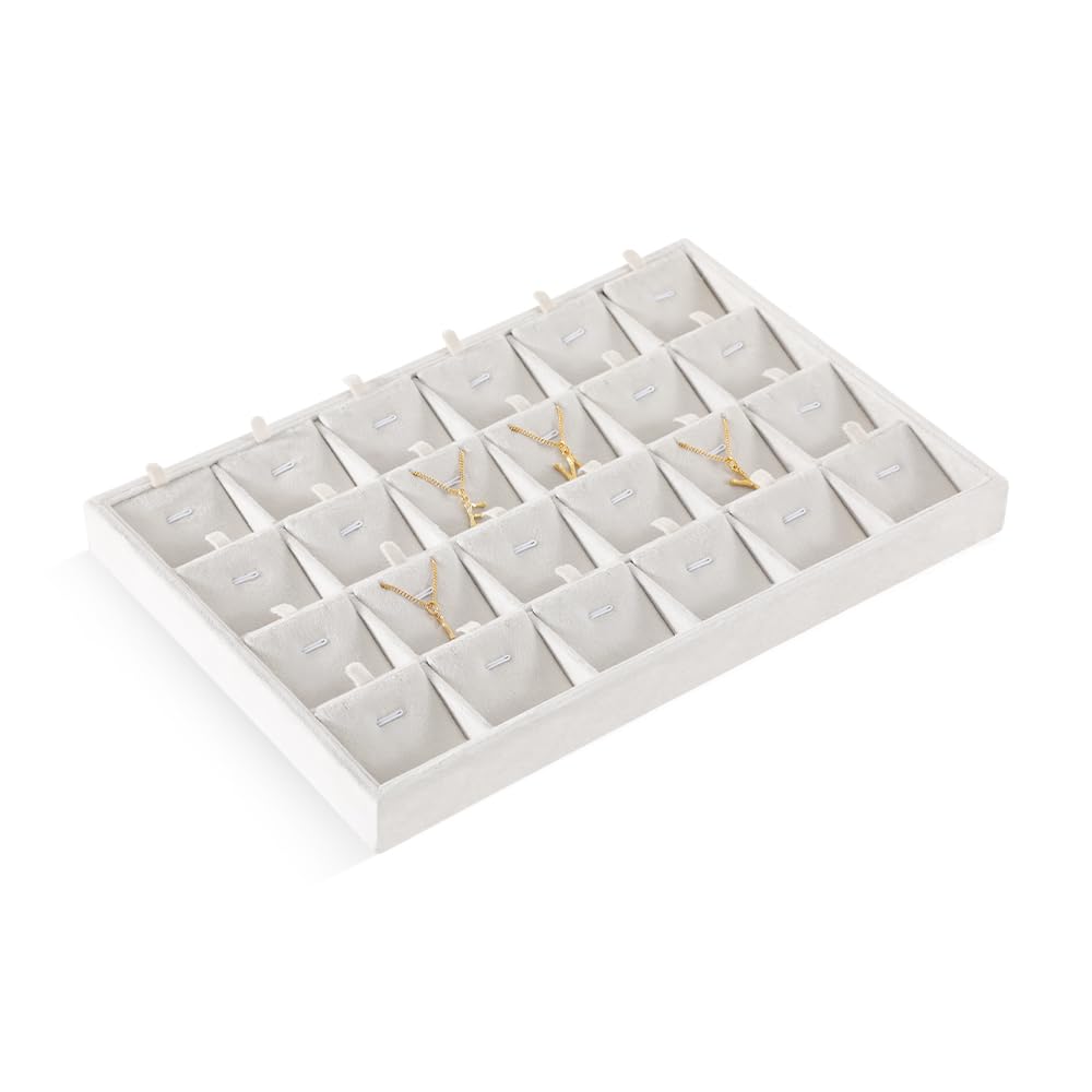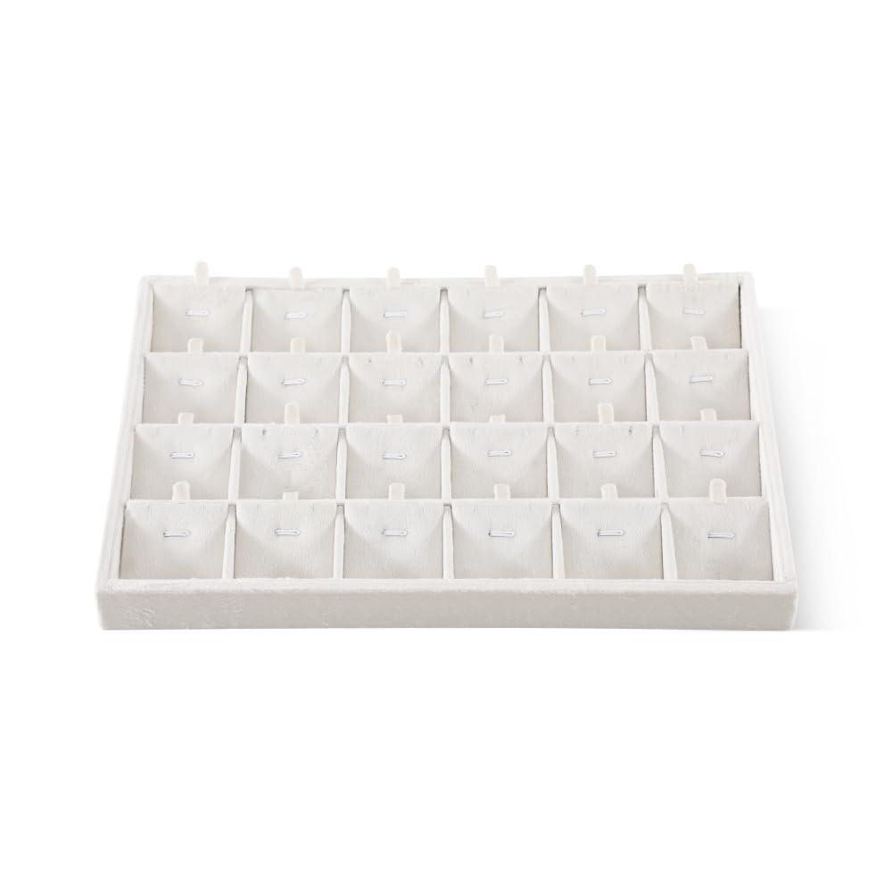 【新着】ベルベット スタッキング ジュエリー トレイ ケース リング イヤリング ネックレス バングル ペンダント オーガナイザー ショップ キャビネット 収納 (ホワイト 24グリッドペンダントトレイ) | GIGATERA