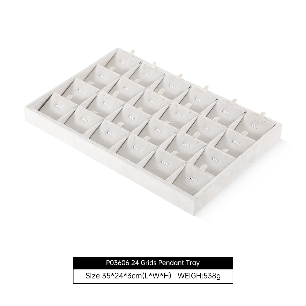ベルベット スタッキング ジュエリー トレイ ケース リング イヤリング ネックレス バングル ペンダント オーガナイザー ショップ キャビネット 収納 (ホワイト, 24グリッドペンダントトレイ)