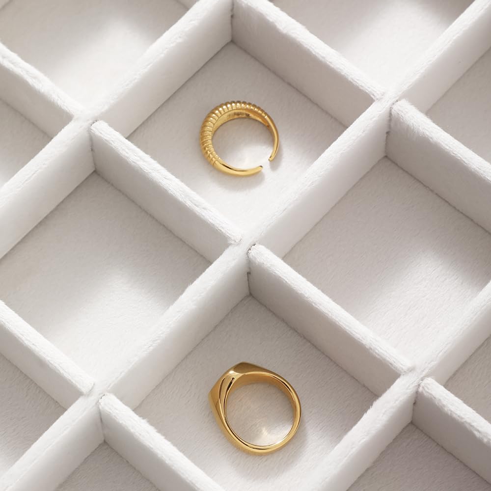 多様なジュエリー対応:リング用の溝、イヤリングホール、ペンダント掛けなど機能的な仕切り