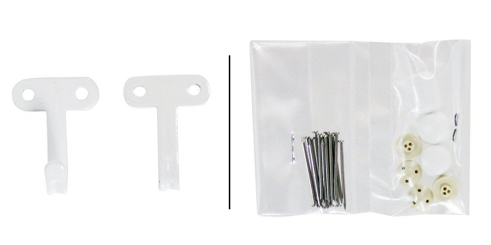 セット内容:フック、[取り付けピース]4個、[キャップ]4個、[クギ]16本(内予備2本)