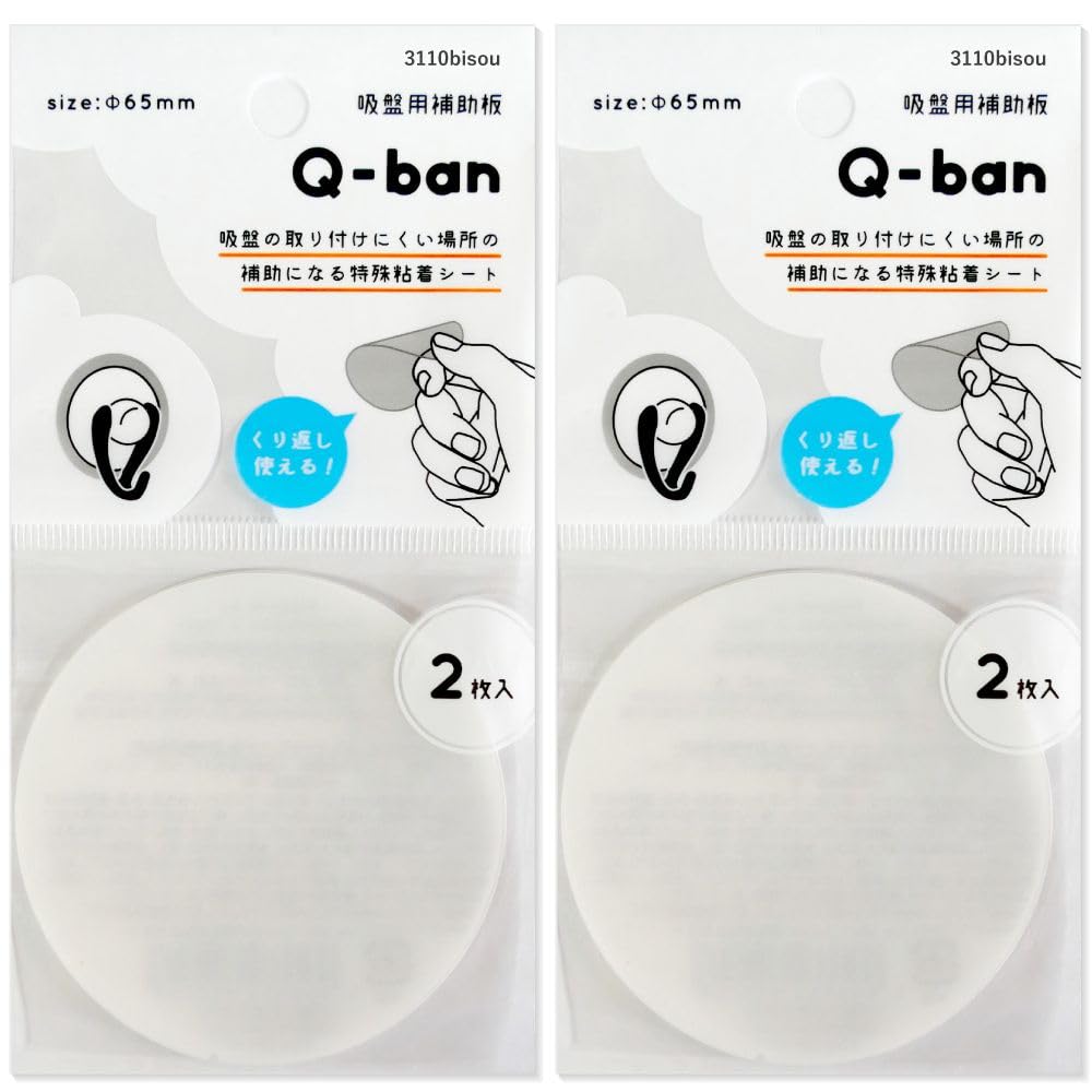 吸盤 取り付け 補助板 Q-BAN ガラスOK 粘着 シート 透明 φ65mm 2枚入り (まとめ買い2パック)