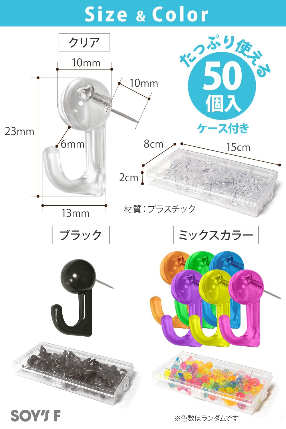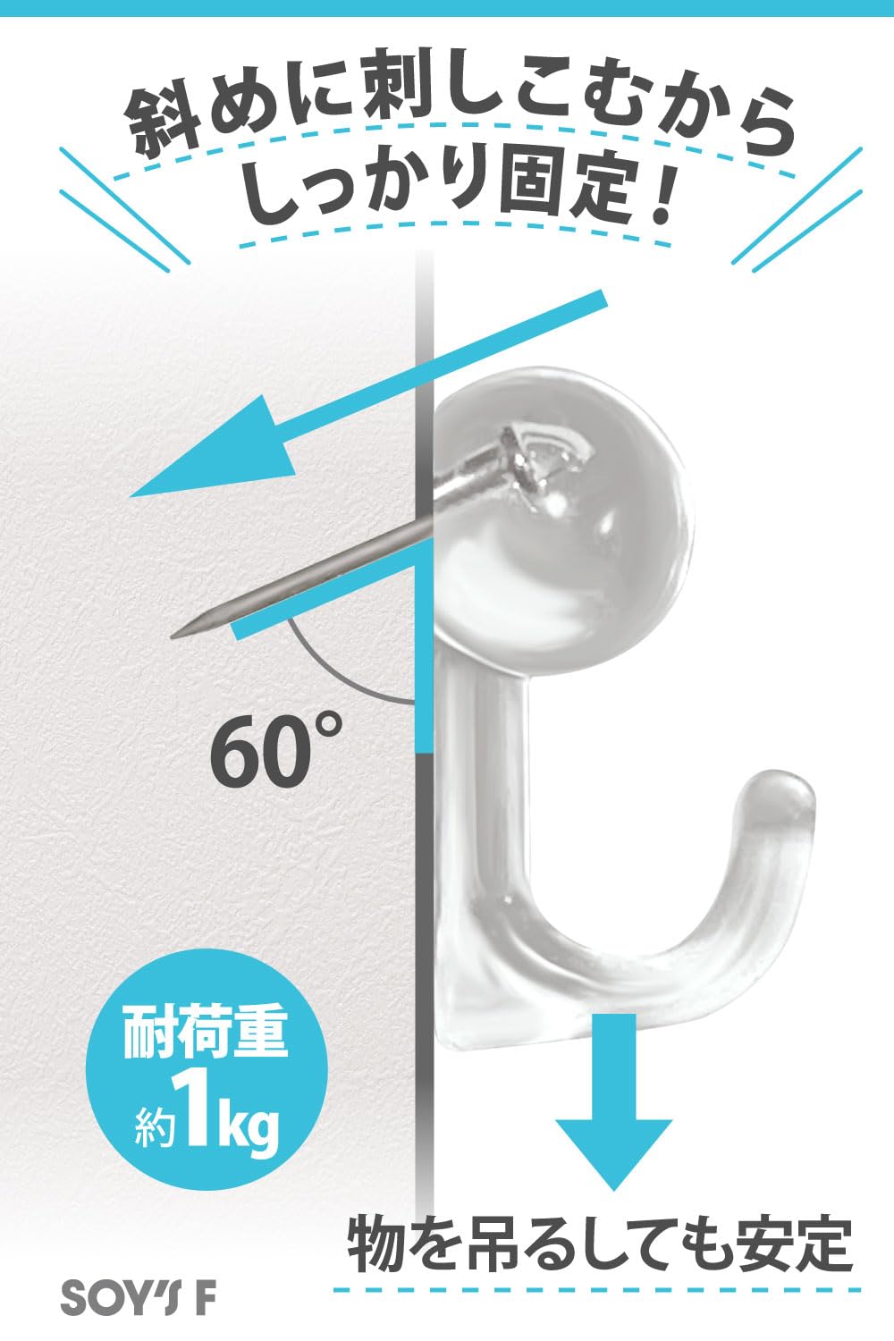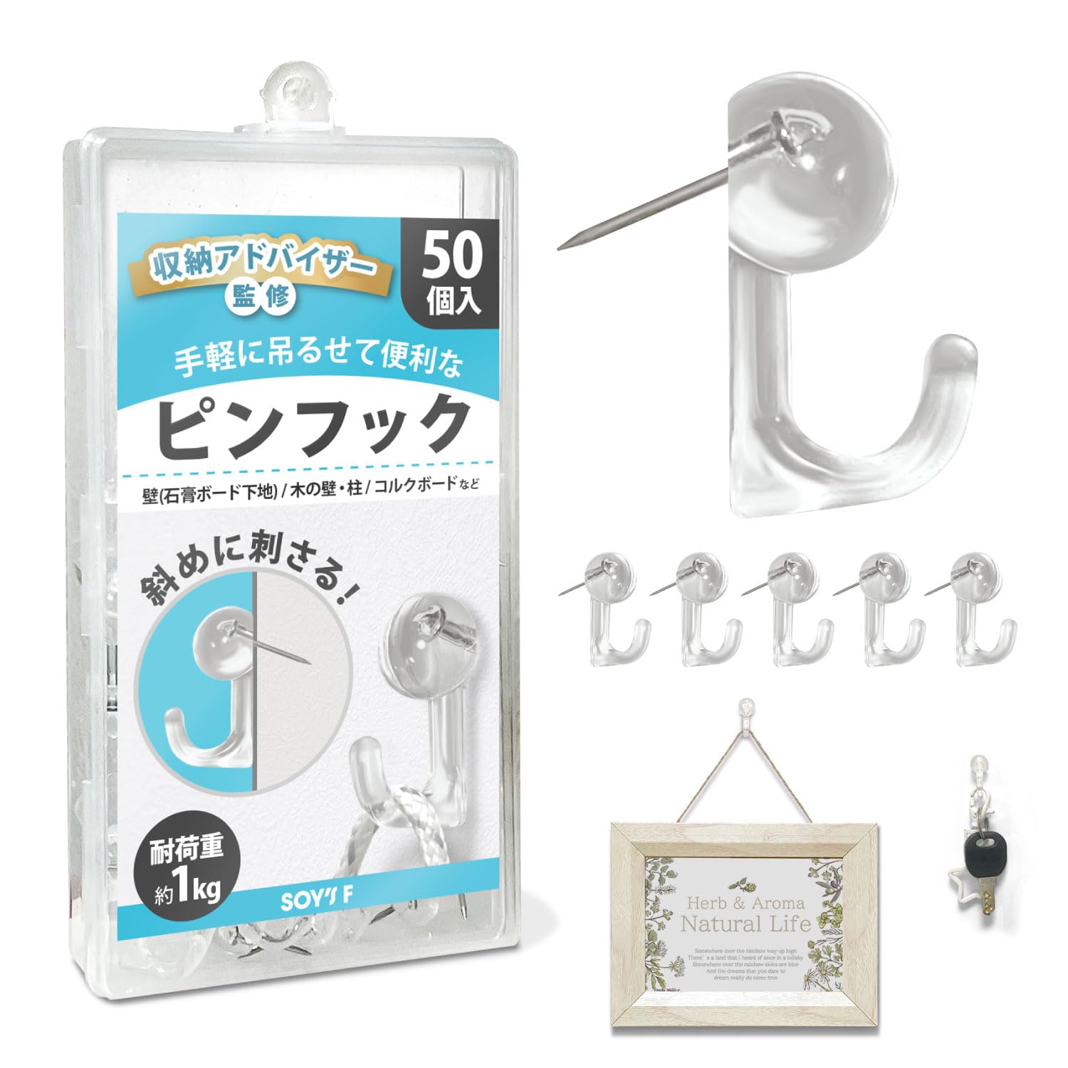 【インテリアコーディネーター監修】 SOY’S F 石膏ボード フック ピンフック 50個セット 壁掛けフック 画鋲 透明 目立たない 額縁 絵画 押しピン 壁 賃貸(クリア)