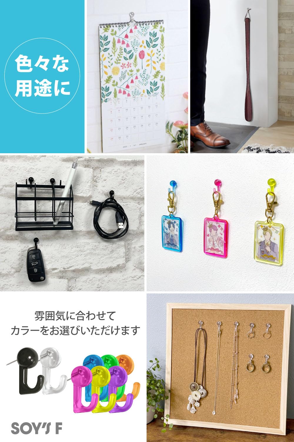 【目立たないクリアタイプ】クリアタイプの画鋲フックは高品質な透明プラスチックで作られており、様々な色の壁紙で違和感を感じることなくご使用いただけます。ブラックタイプは黒を基調とした壁紙や黒い物を飾る際にお勧めです。ミックスカラーは華やかに見せたい際にお勧めいたします。