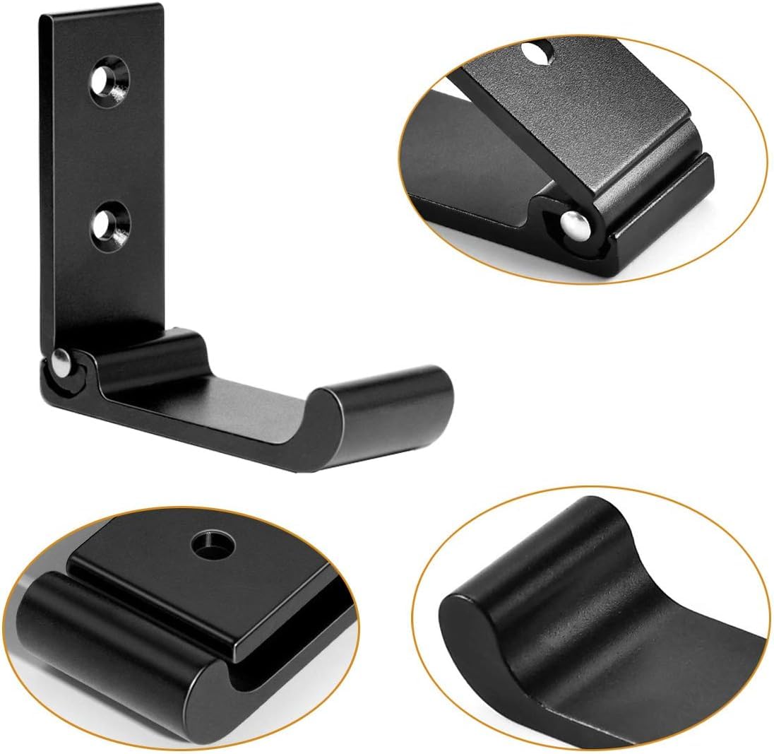 【新着】折りたたみ式ウォールフック 2個入り 折りたたみ式フック 耐荷重33ポンド/15kg 壁取り付け 高耐久 錆びない アルミニウム合金 折りたたみ式コートフック 4本のネジ付き コート&バッグ&帽子を掛けるため (ブラック) | GIGATERA