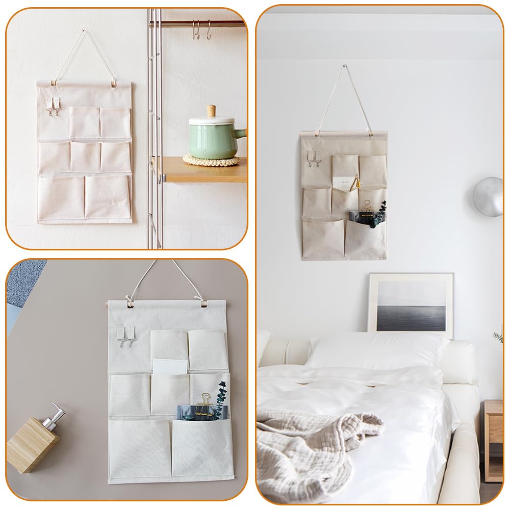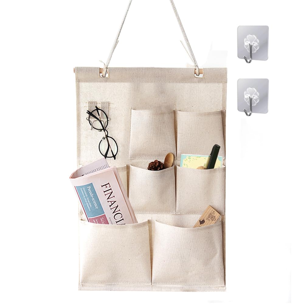 ウォールポケット 壁掛け収納式 3段 7ポケット 吊り下げ ドアハンガーポケット ドア掛け 寝室 玄関 小物入れ 新聞紙 雑誌 手紙 鍵などを掛ける 折りたたみ 収納 整理 分類 インテリア 粘着フック2個付き