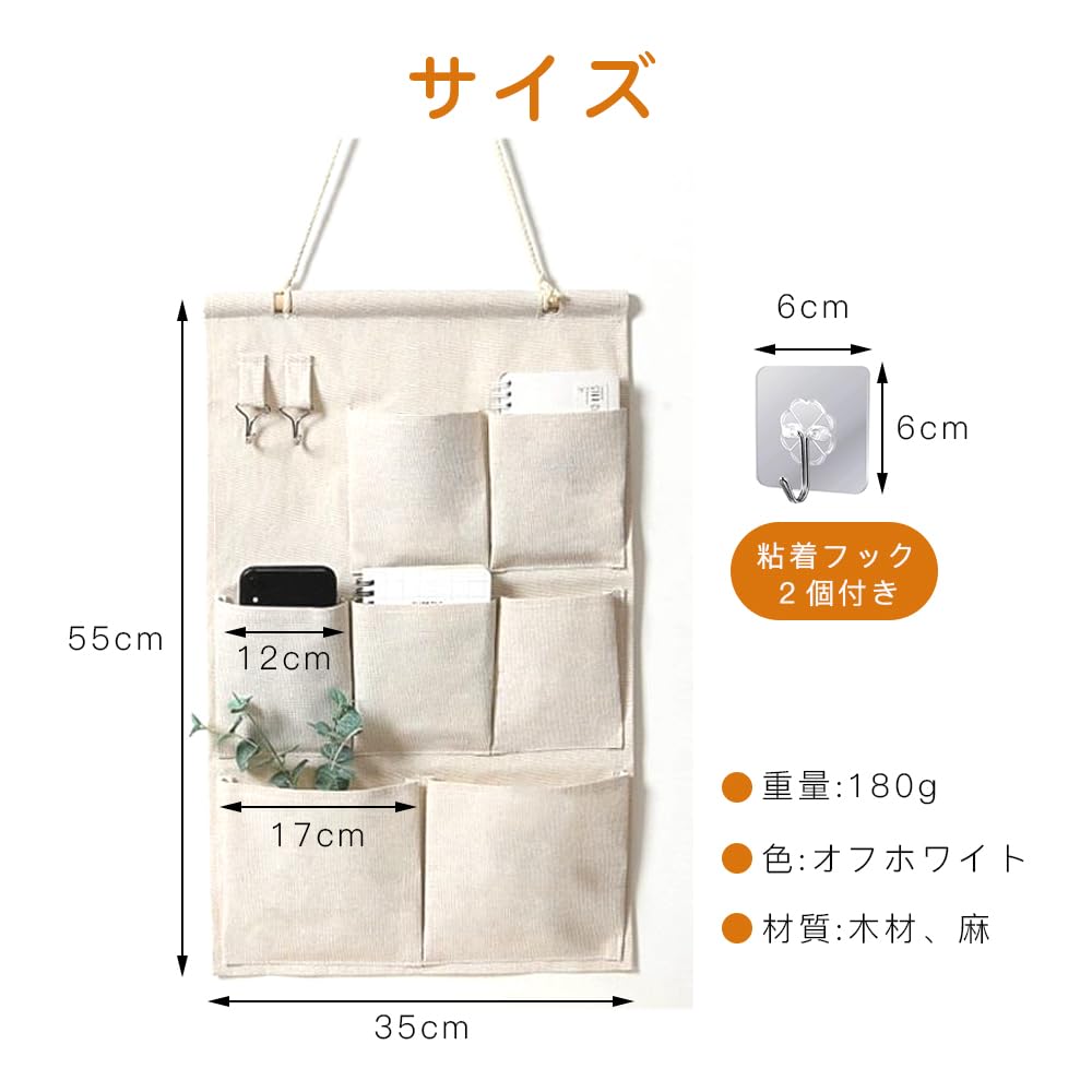 【多用途な収納設計】3段7ポケットの多機能収納で、郵便物や文房具、小物をすっきり整理できます。上段のフック付きで、鍵やアクセサリーも便利に収納可能。