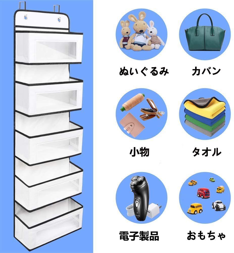 【人気】ウォールポケット Yonace ドア掛けポケット 透明窓付き 5段大容量 壁掛け収納ポケット 吊り下げ収納ポケット 頑丈な不織布 耐用 小物収納 おもちゃ ぬいぐるみ バッグ タオル 本 書類などの収納 2xフック付き(白い) | GIGATERA
