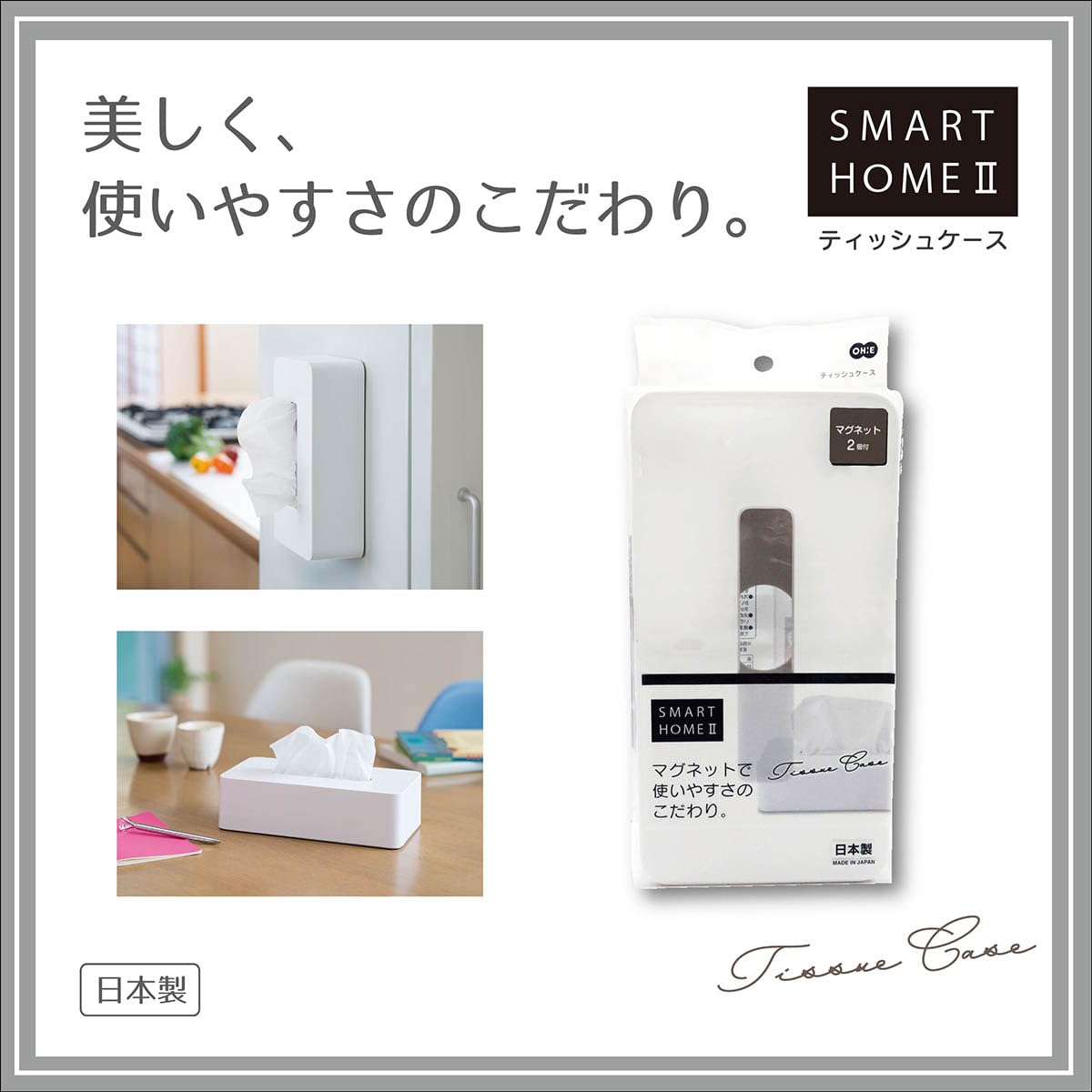 【特価在庫】オーエ(Ohe) ABS樹脂 ティッシュケース 長方形 白 約縦24.5×横13×高さ7cm スマートホーム II ペーパーホルダー ティッシュボックス マグネット付き シンプル 日本製 | GIGATERA