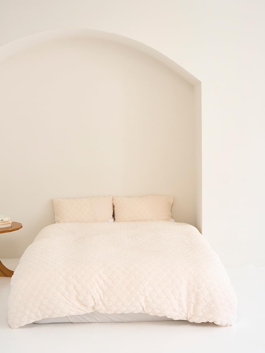 素材:掛カバー:表面ポリエステル95%、ポリウレタン5%/裏面ポリエステル100%/ボックスシーツ:ポリエステル100%/ピロケース:ポリエステル95%、ポリウレタン5%