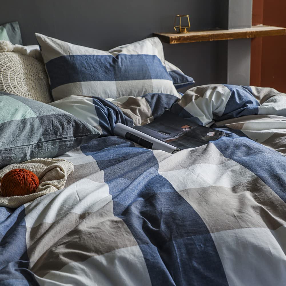 【在庫処分】綿100% 布団カバー ダブル 4点セット オーガニックコットン洗いざらしの綿100% コットン 寝具カバーセット 布団かばー ベットカバー 洗い替え 速乾 防ダニ ブルー チェック 柄 | GIGATERA