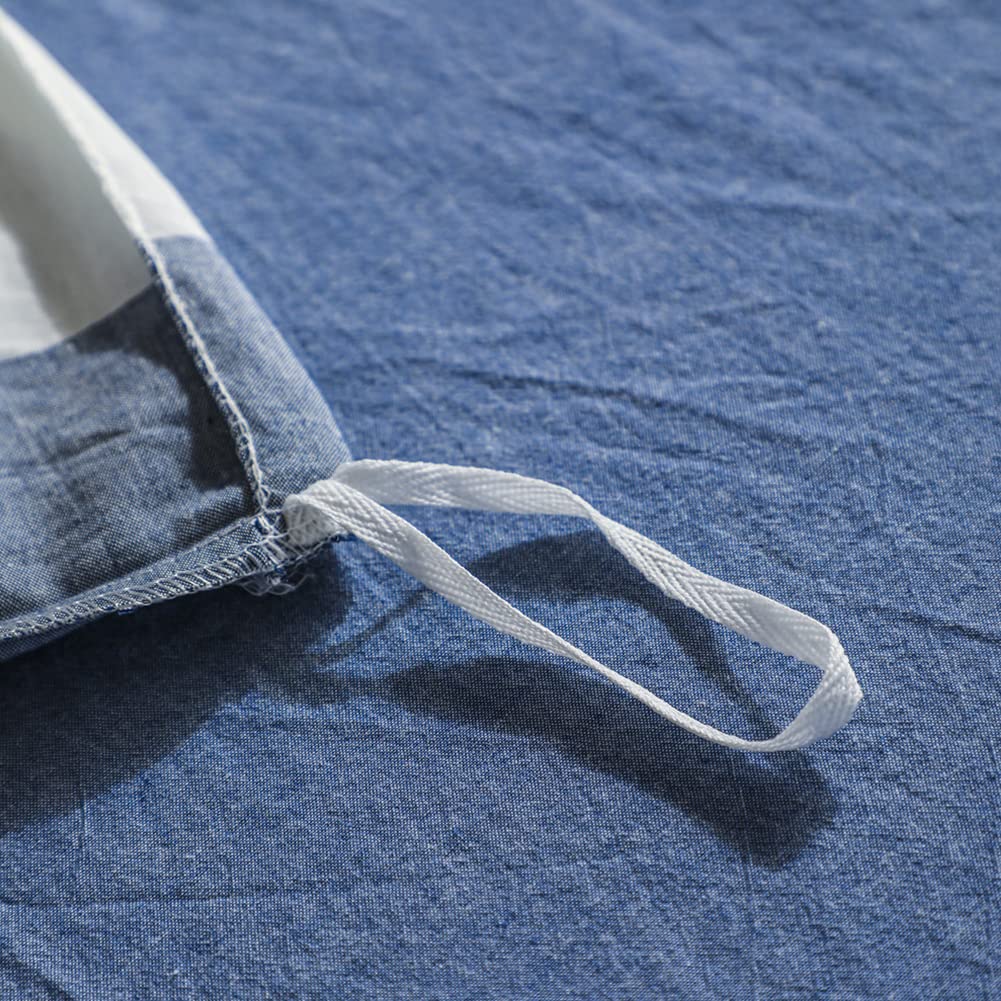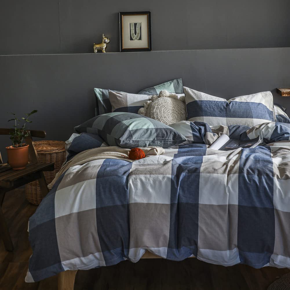 綿100% 布団カバー ダブル 4点セット オーガニックコットン洗いざらしの綿100% コットン 寝具カバーセット 布団かばー ベットカバー 洗い替え 速乾 防ダニ ブルー チェック 柄