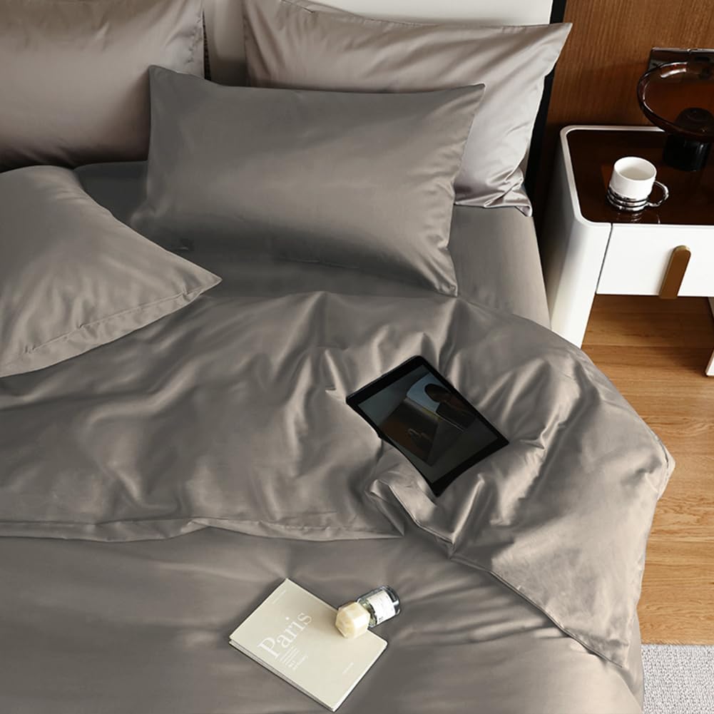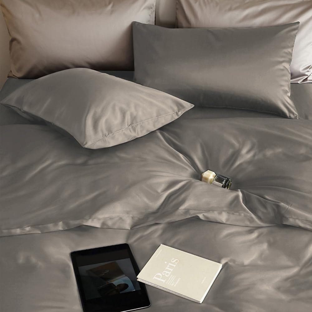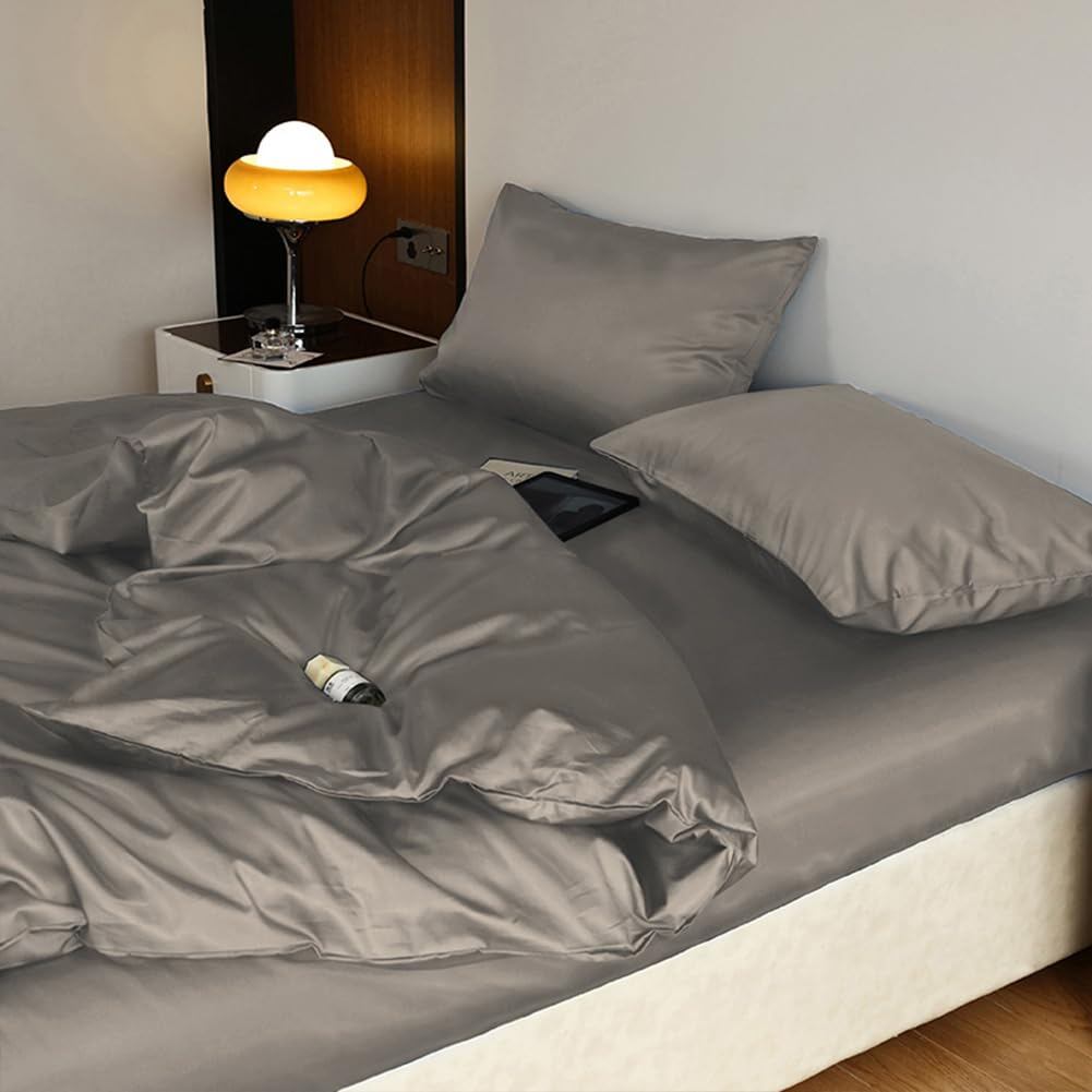 【新着】掛け布団カバー シングル ツルツル サテン 光沢 艶感 300本高密度生地 単品売り 掛けふとんカバー ふとんカバー 布団カバー オールシーズン 無地 150*210CM 8ヶ所ヒモ付き 洗い替え ダークグレー | GIGATERA