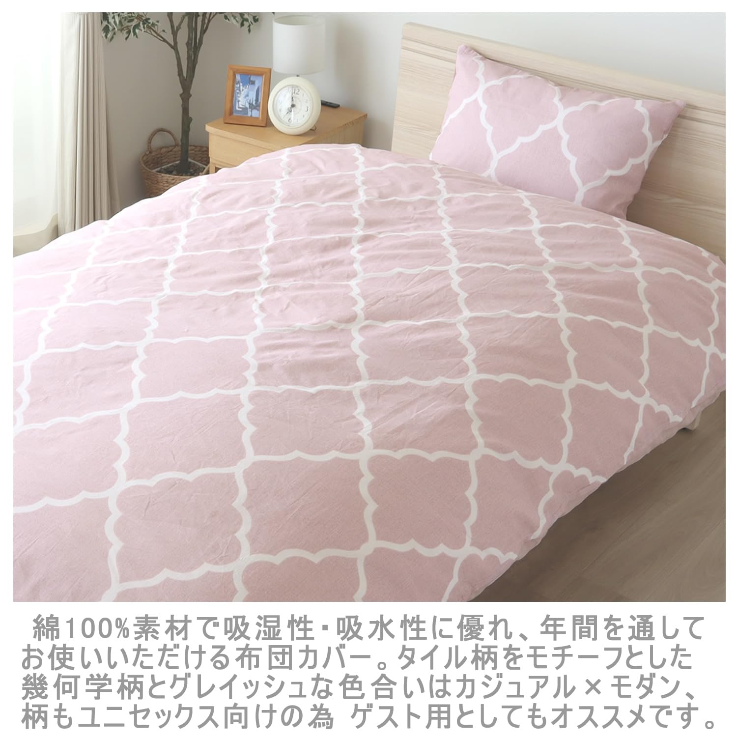 メリーナイト 掛け布団カバー 「アンファ」 グレイッシュピンク シングルロング 約150×210cm 綿100% 吸湿性 通気性 天然素材 心地よい肌触り オールシーズン 洗える MN12170-16