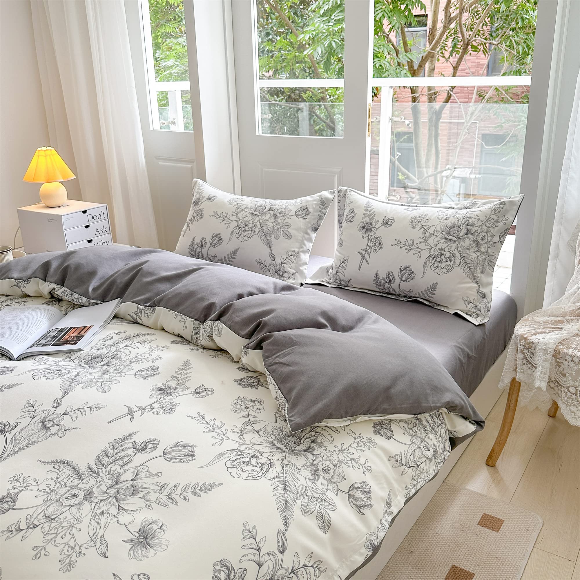 布団カバー 花柄 掛け布団カバー 寝具カバー 花柄 おしゃれ ダブルファスナー (布団カバー 単品販売) (掛カバー150*210cm, Black)