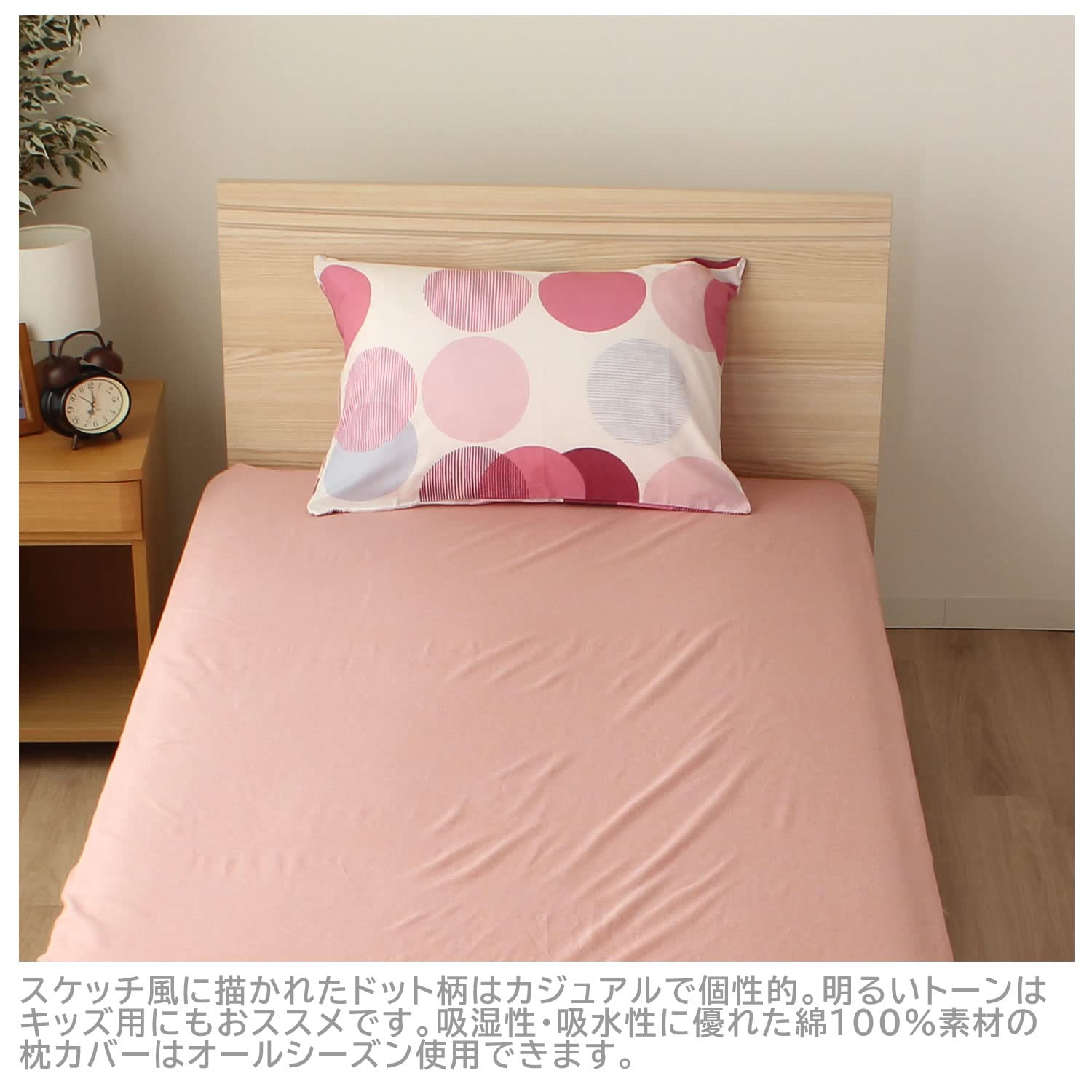 【特価】メリーナイト(Merry Night) 枕カバー 「ドット」 ピンク 約43×63cm ファスナー式 まくらが入れやすい 綿100% 心地よい肌触り オールシーズン 洗える FF16118-16 | GIGATERA